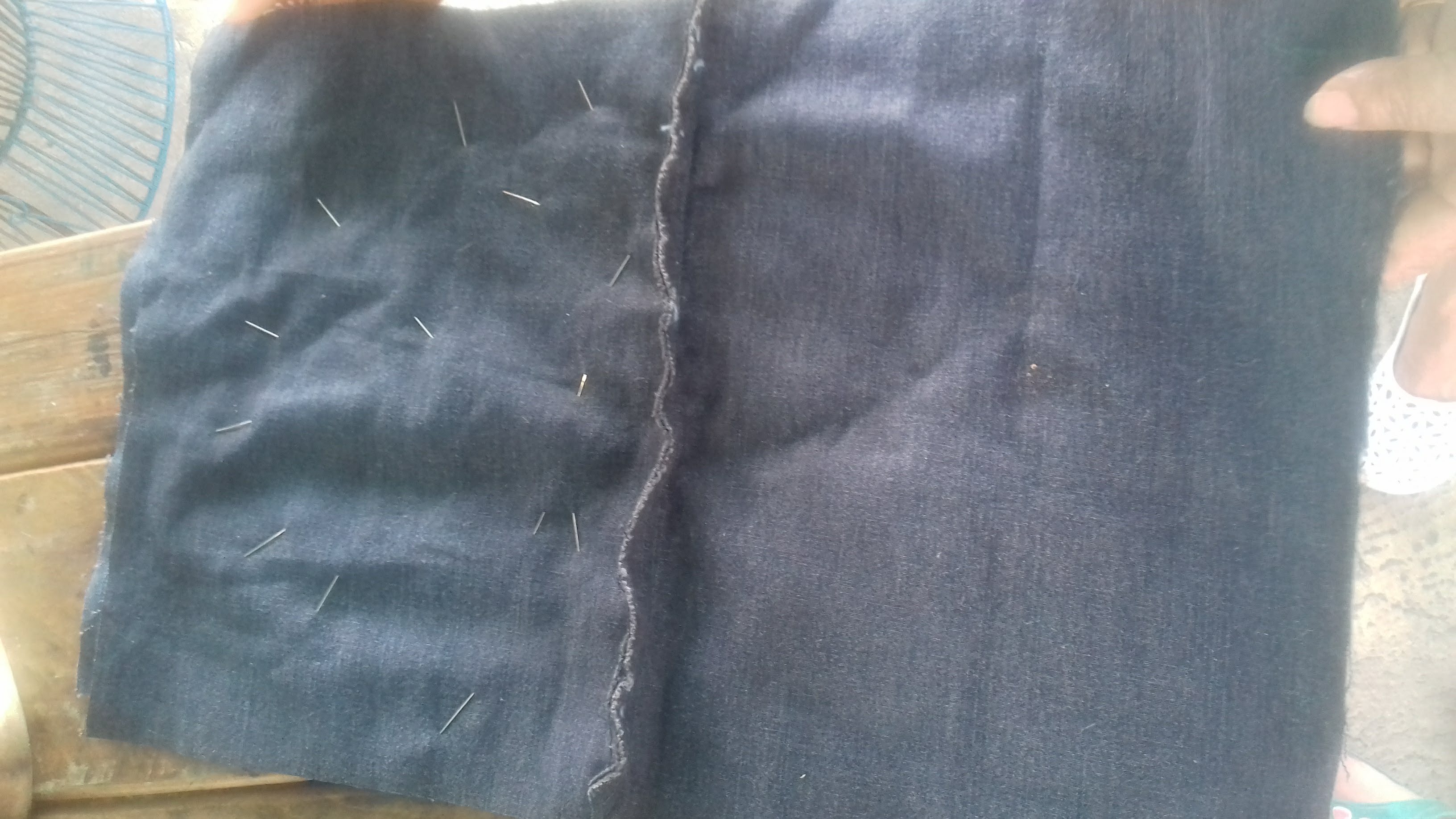 In this case, a piece of the lower part of a jeans is cut so that the seam can be seen.