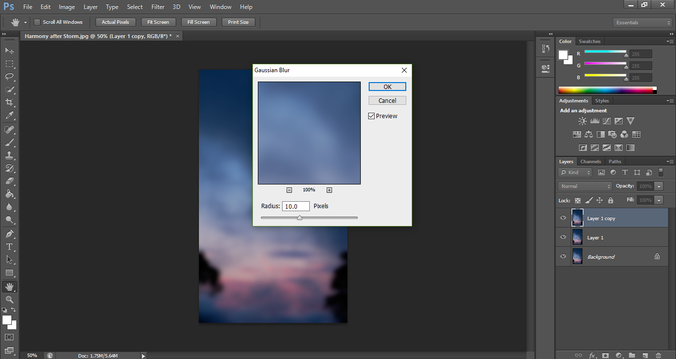 Now we select how much we want our photo unfocused, I this case I will try with 10 pixels, you can play with that to get the ideal photo