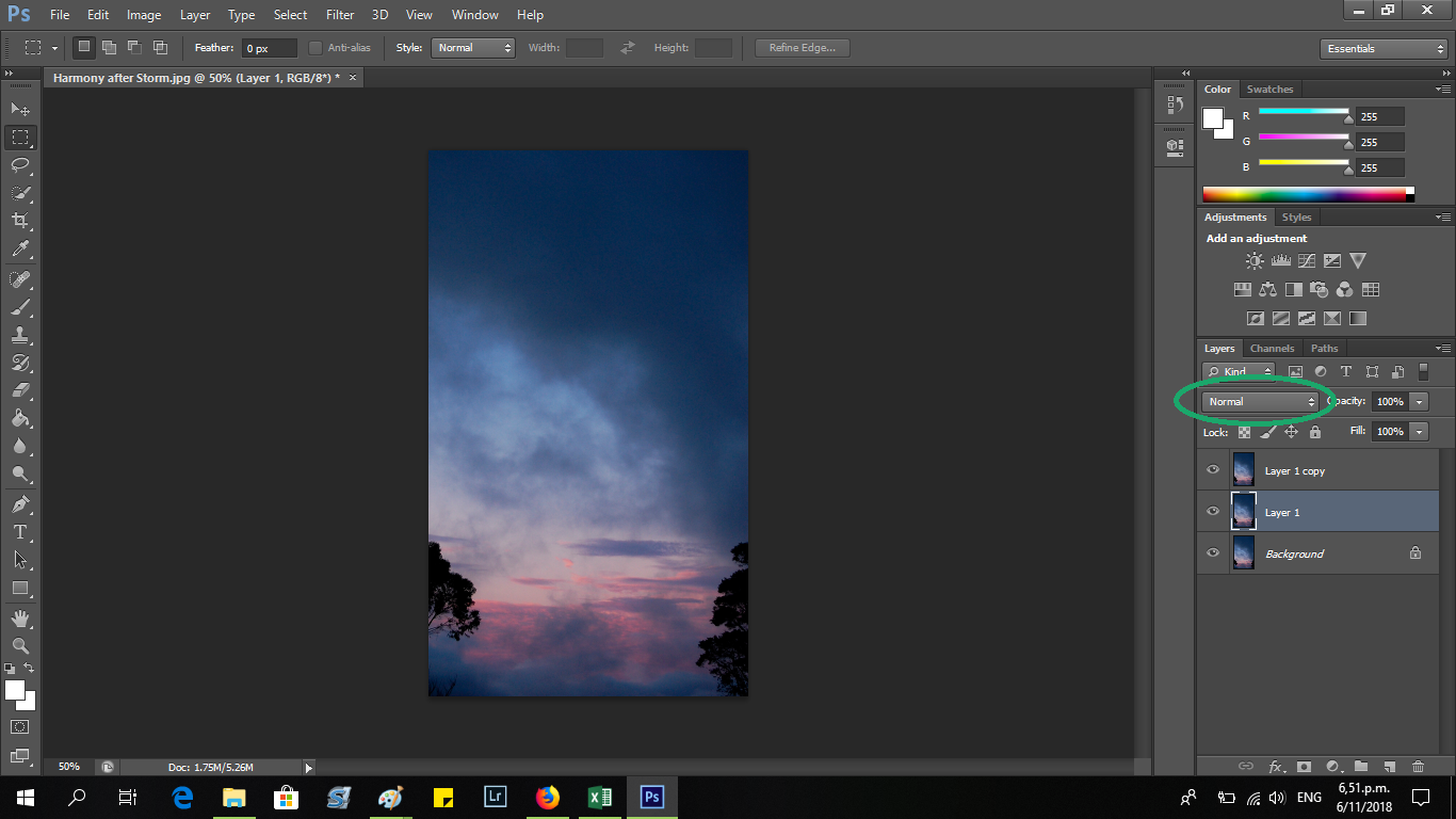 We select the middle layer and we go to the option that have a circle in the image and we put lighten