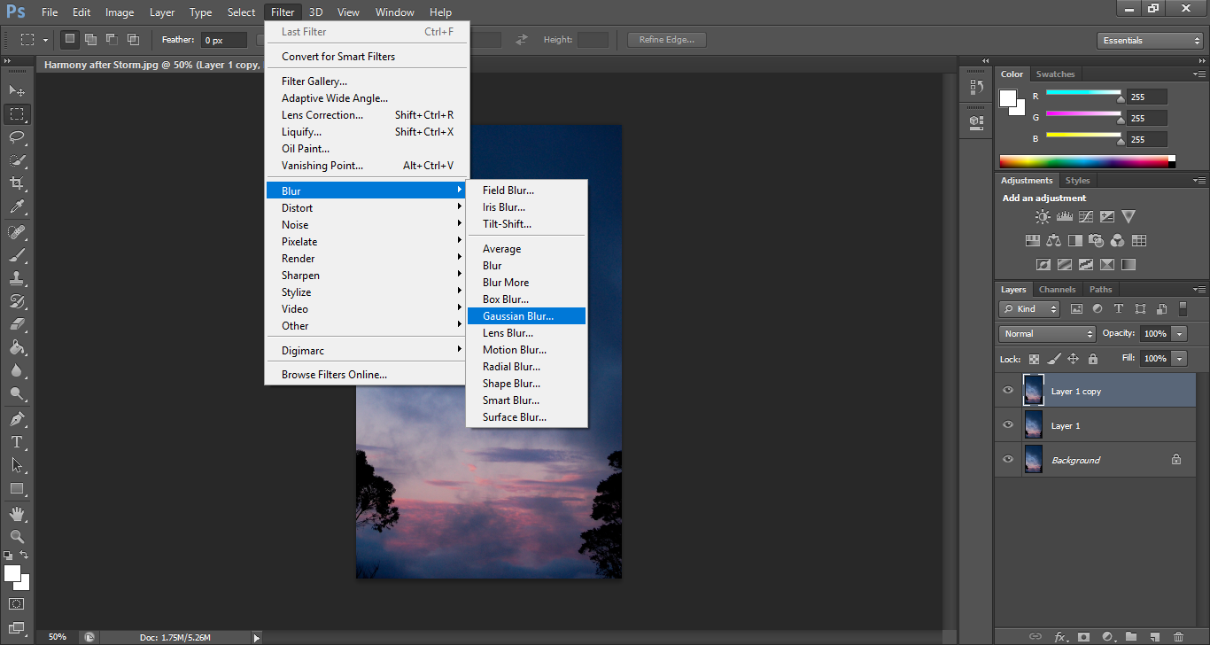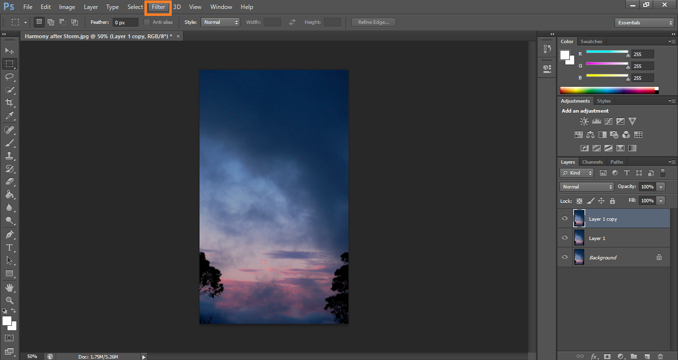 After, we go to the top layer and we go to the option in the higher menu Filter