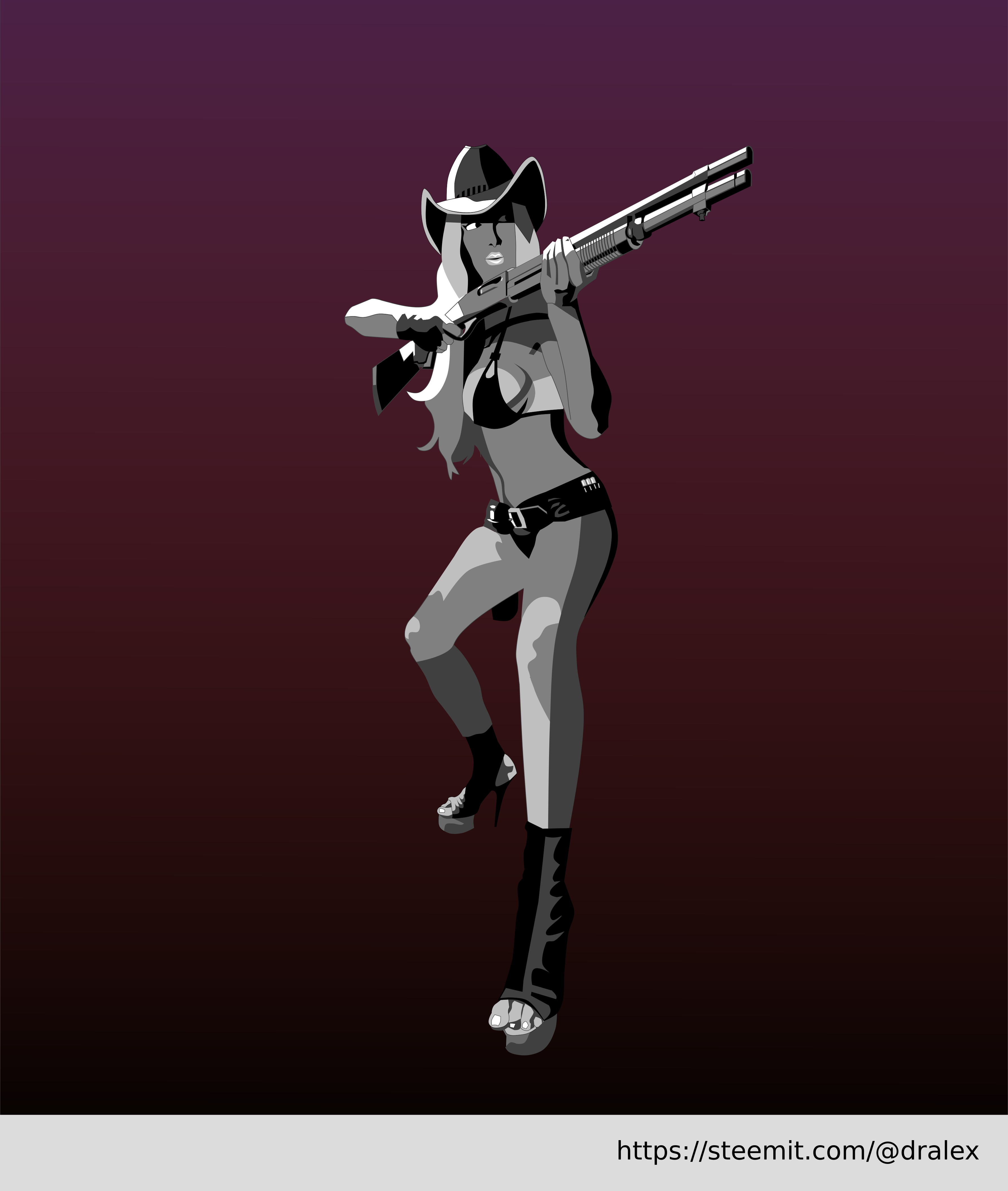 I want to share this art I made point per point using a vectorial drawing software called Inkscape. In the principle, I was thinking about making something to put on t-shirts, but I left this idea behind and it was unfinished. Today, I finished it. I done using 3 or 4 shades of gray, black and white. I hope you enjoy this!