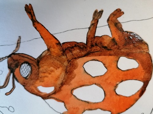 watercolor painting of a nice and beautiful bug on the road in the forest . i like to show you how to draw and color it in watercolors