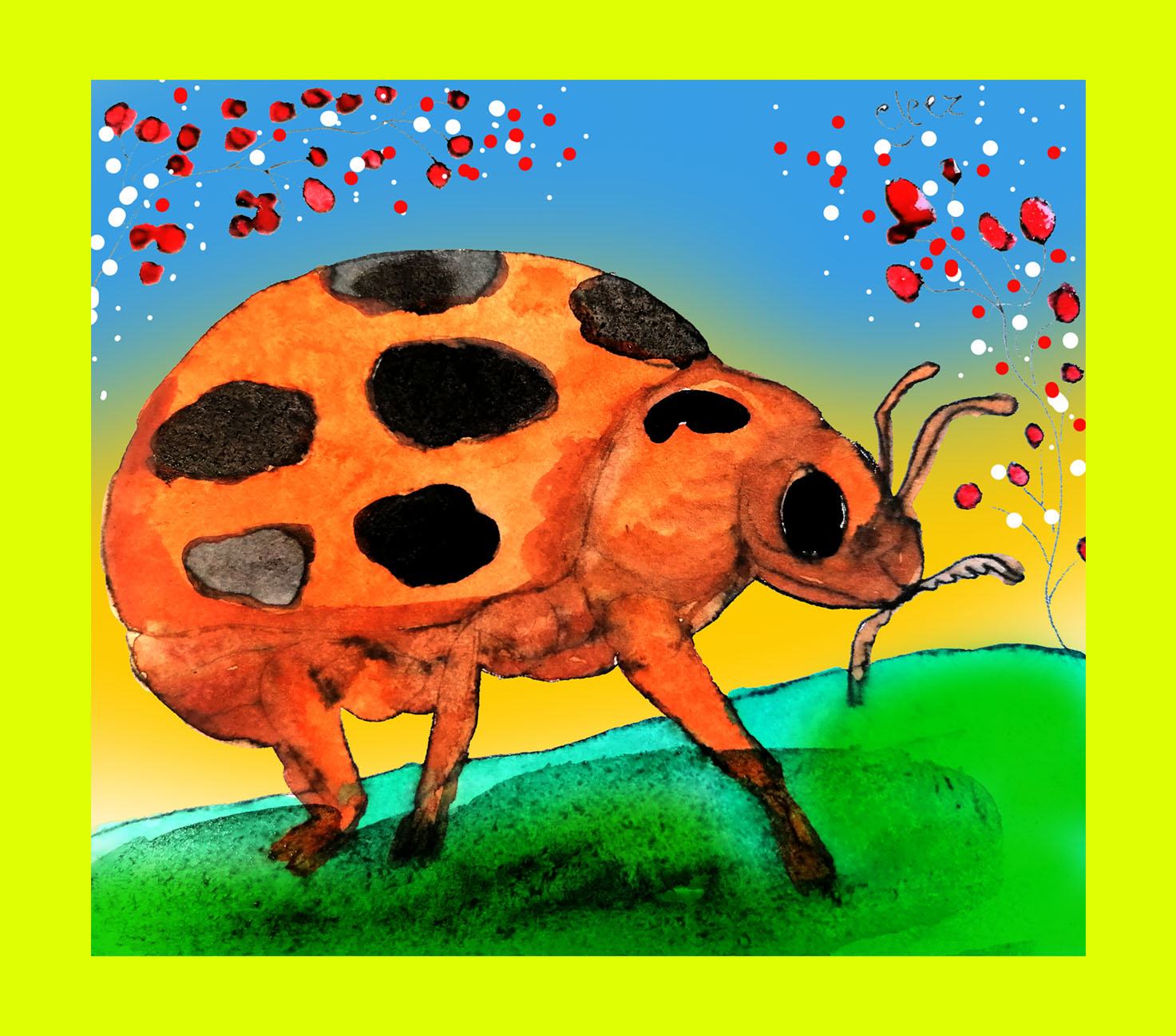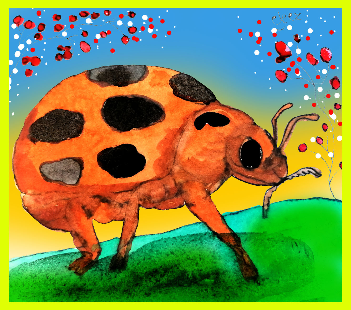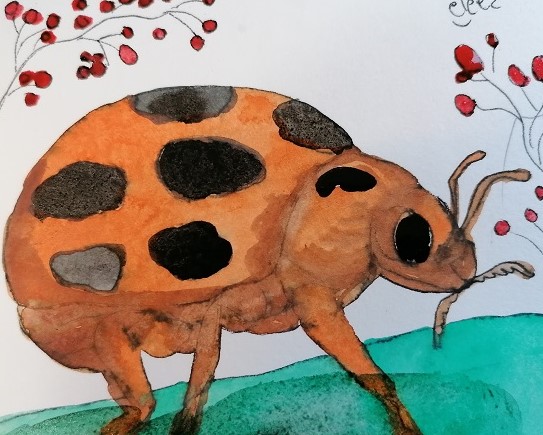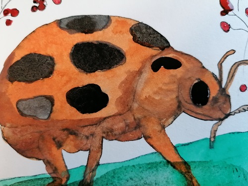 CUTE LADY BUG WATERCOLOR PAINTING