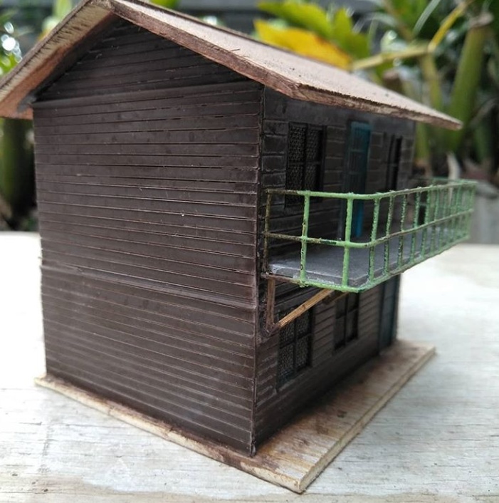 Today I share miniature house artwork made of wood and a little mixture of plastic rope, this miniature was made by my friend and for the manufacturing process I still started to learn it so I could make a work of art like this, my friend explained the process the making of this miniature house and for the manufacturing process took five days and to get the ingredients, my friend used wood that had been tempered