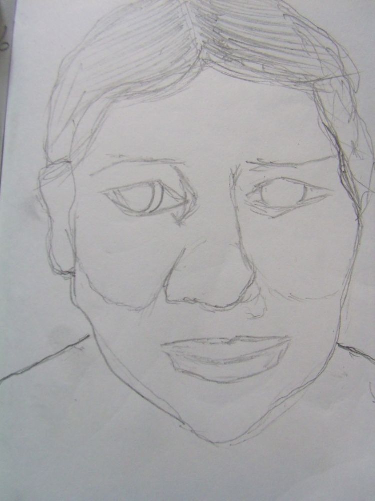 plasme rápidamente un boceto tratando de no olvidar su rostro al llegar a mi casa lo primero que hice fue terminar de dibujarla y he aquí el proceso.