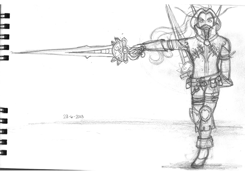 Everything began with this sketch I made the day I obtained my swords. In paper; It doesn’t look good, and it doesn’t resemblance to the final result.