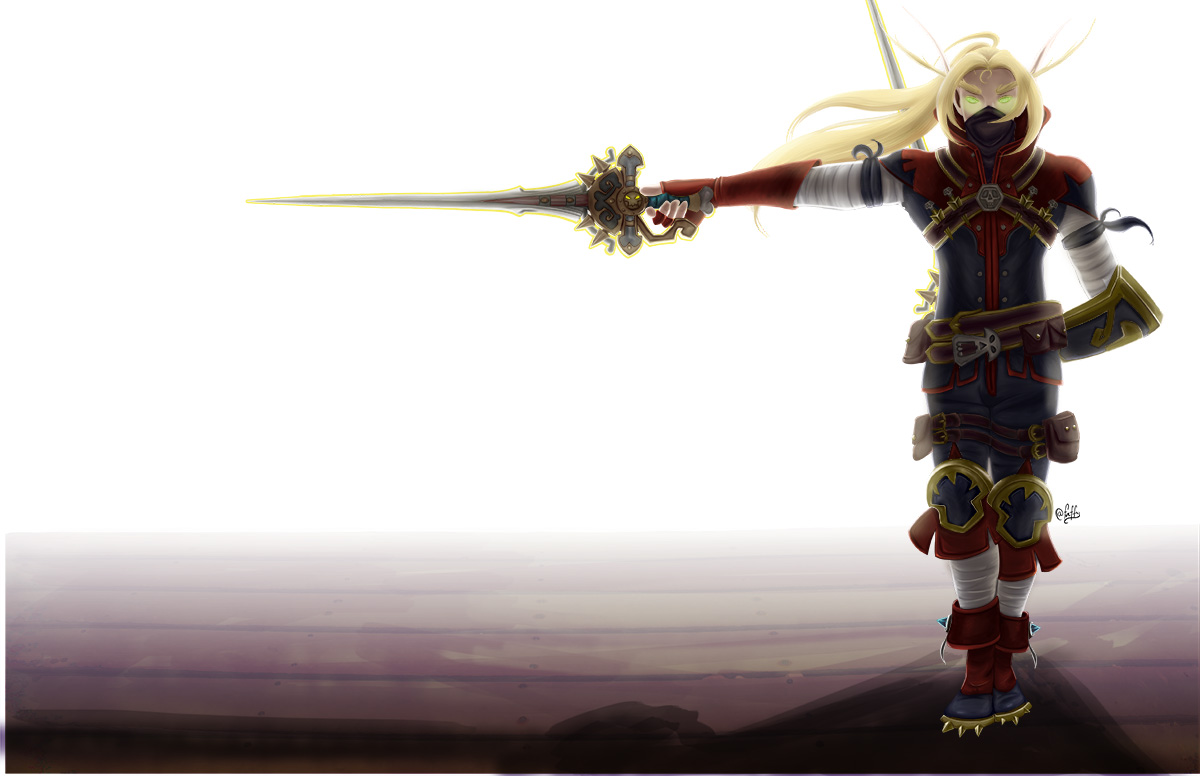For some people, is easier; for other, is harder. Each person have better skills or a better pc than other; varying the difficult of this challenge in many possibilities. Personally, the challenge, even having my character full equip as much as I could, it was pretty difficult. And for celebrate my victory, I decided to draw my character, wielding the fabulous floret, which where the reward weapon for the Outlaw Rogue Challenge.