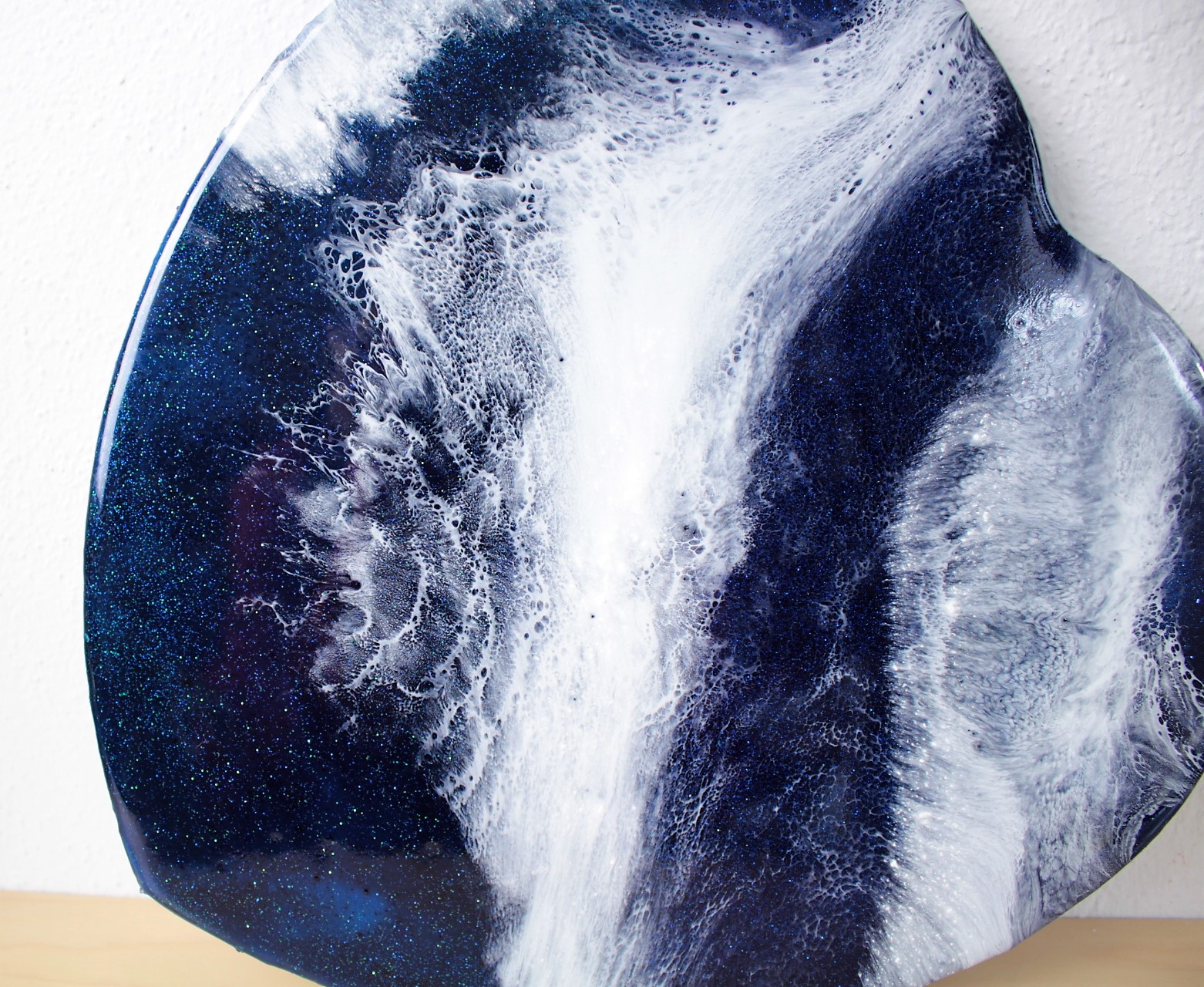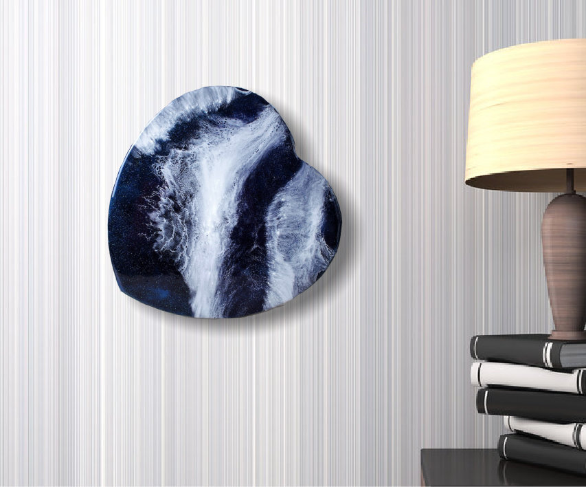 This is ocean heart 3. I painted the deep blue sparkling see and waves in an abstract way.
