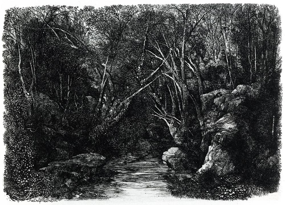 Bresdin lived in obscurity and poverty. He dreamed of visiting the untamed backwoods of America and after winning a competition for a banknote design in 1871 he travelled there, to return penniless in 1876. Bresdin was much admired by the symbolist writers – his personality inspired Champfleury's novel ''Chien-Caillou''.