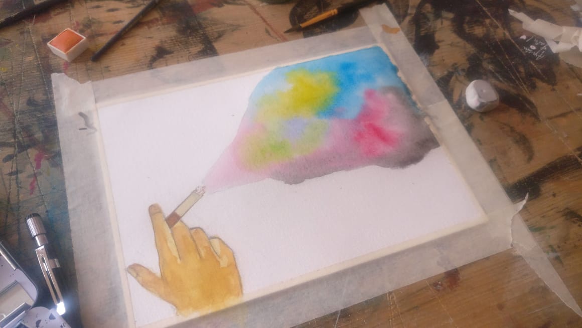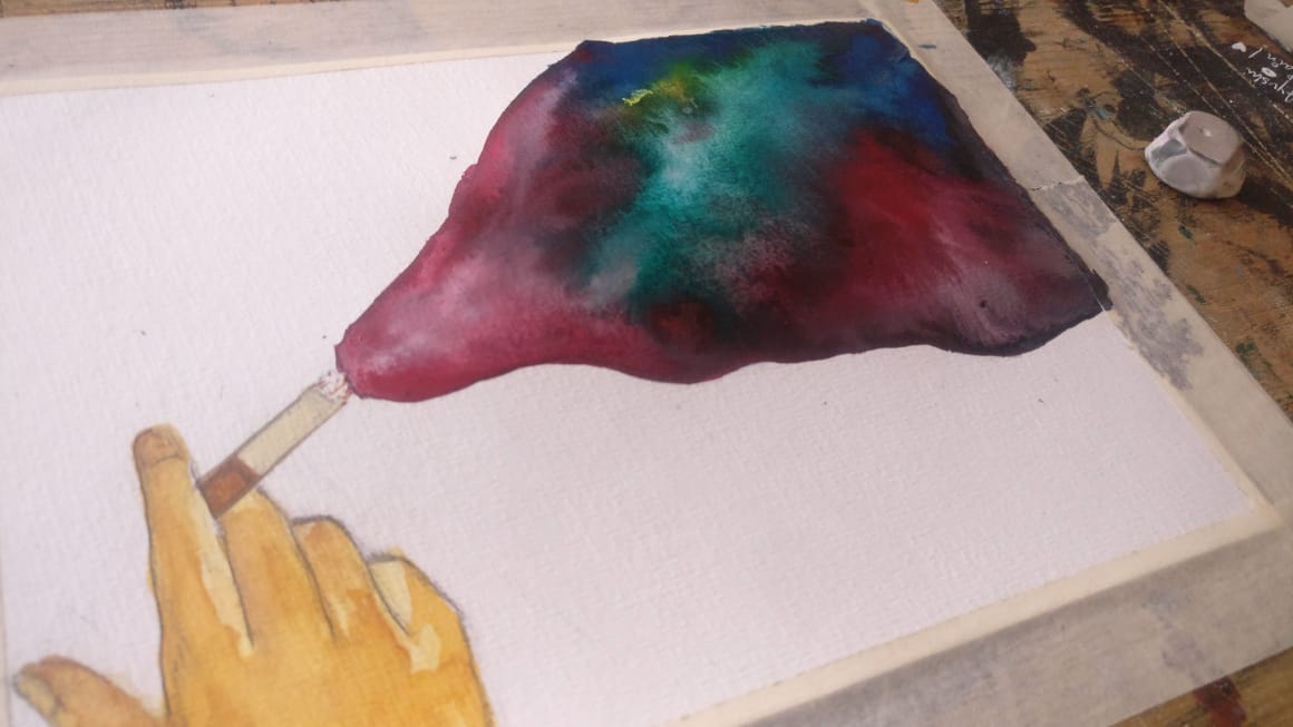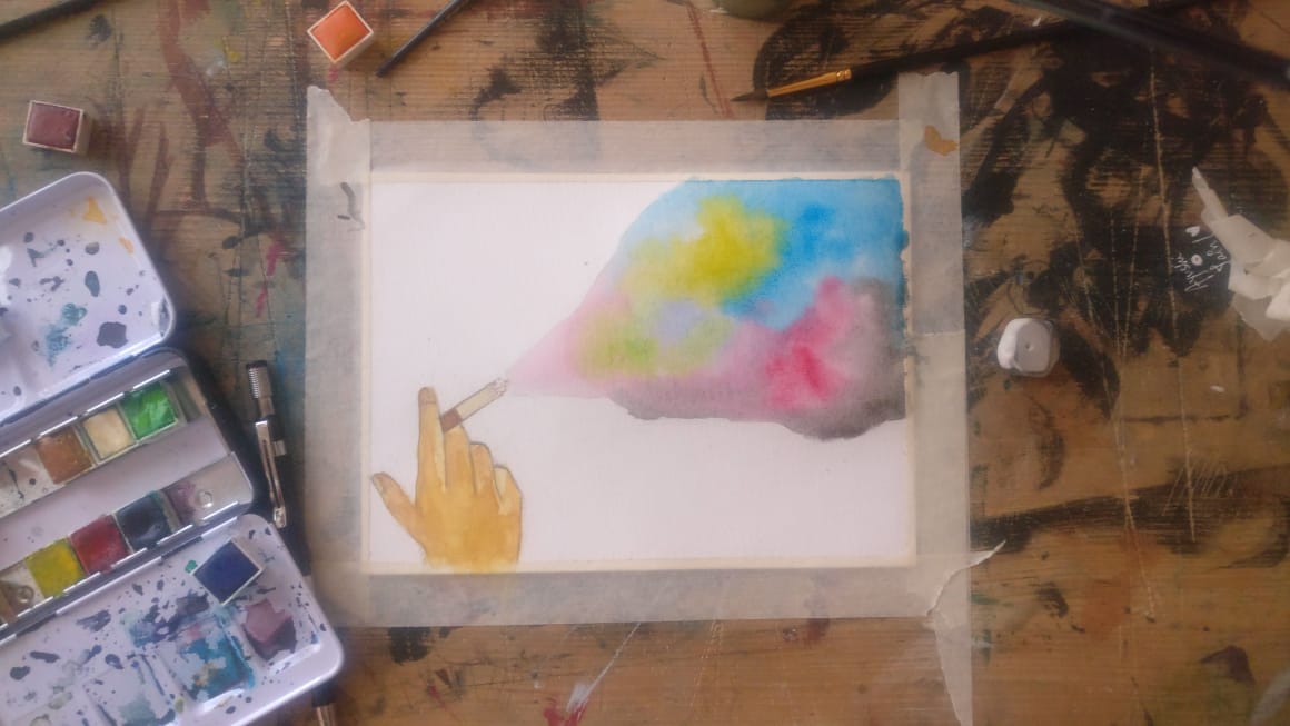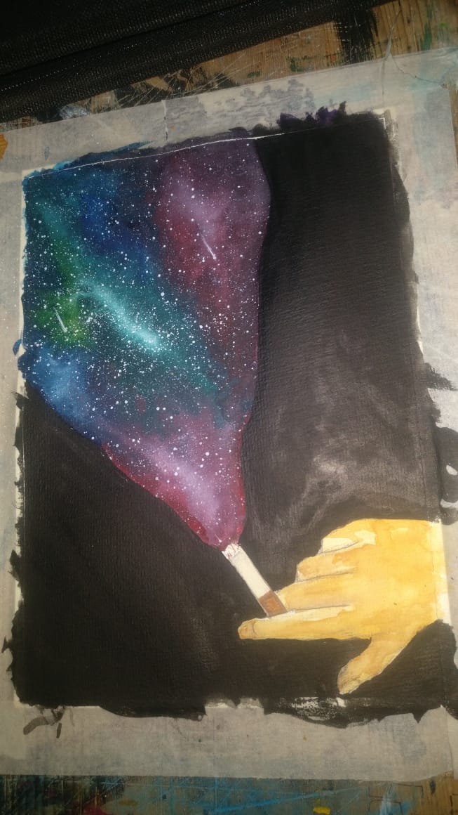 So to do things a bit different, I tried a different perspective. I don't know even it makes sense, but I just tried how a smoker is so addicted to smoke. Do it takes you somewhere. Many people high on grass tells that it takes you to different world. I am unable to understand that feeling just by listening , so I tried my medium to understand the world, Paint.