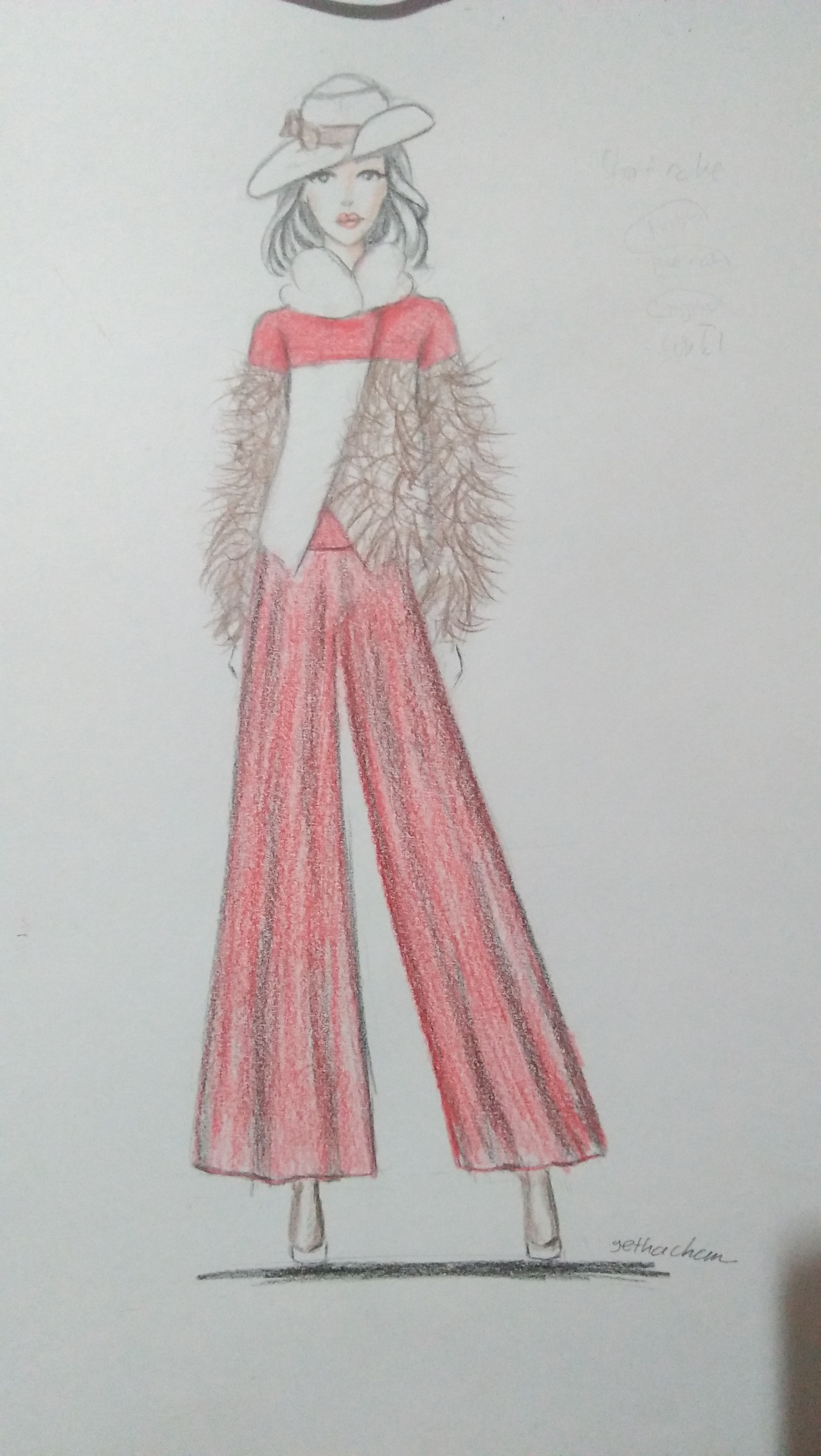 I imagined this shirt was made of thick sweater material and I added a feather accent around my arms to reflect softness.