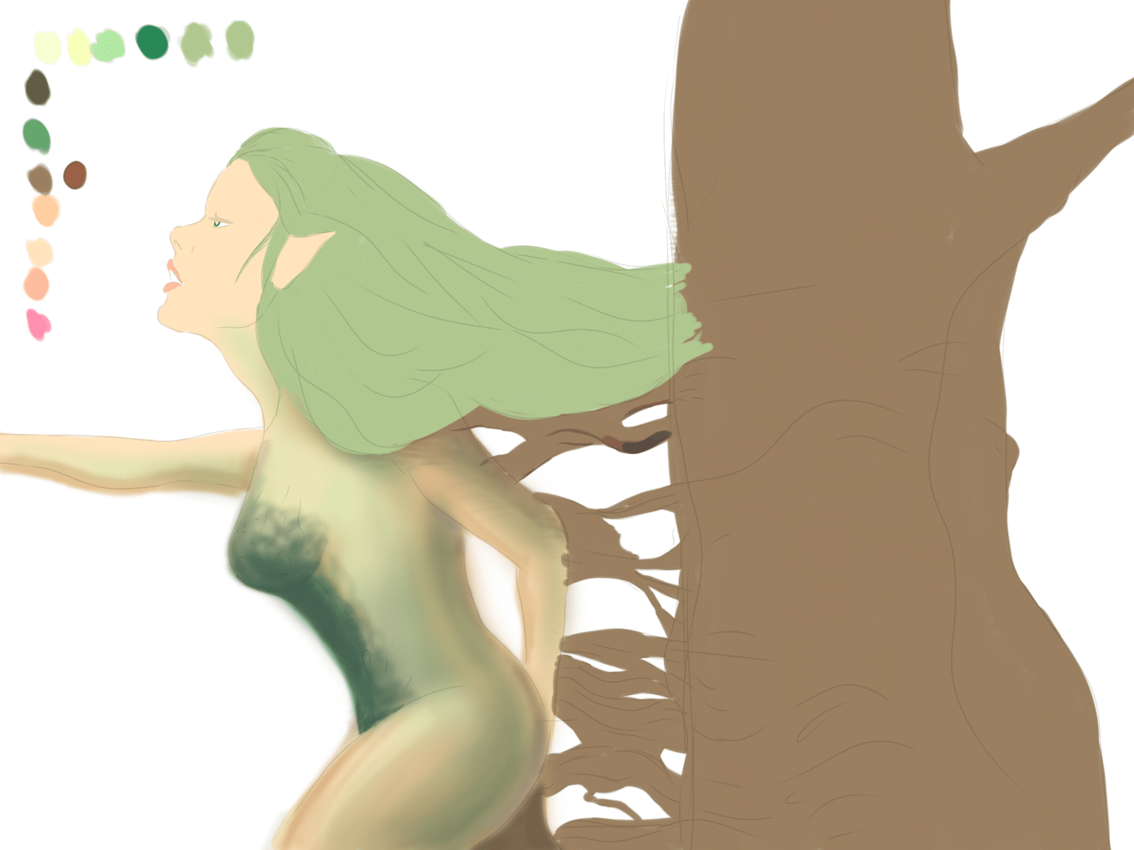 In the case of my Dryad, I decided to give him a branched hair, which I have achieved by reducing and increasing the size of the brush and using different shades of color, always taking into account the shade it exerts on the skin under it.