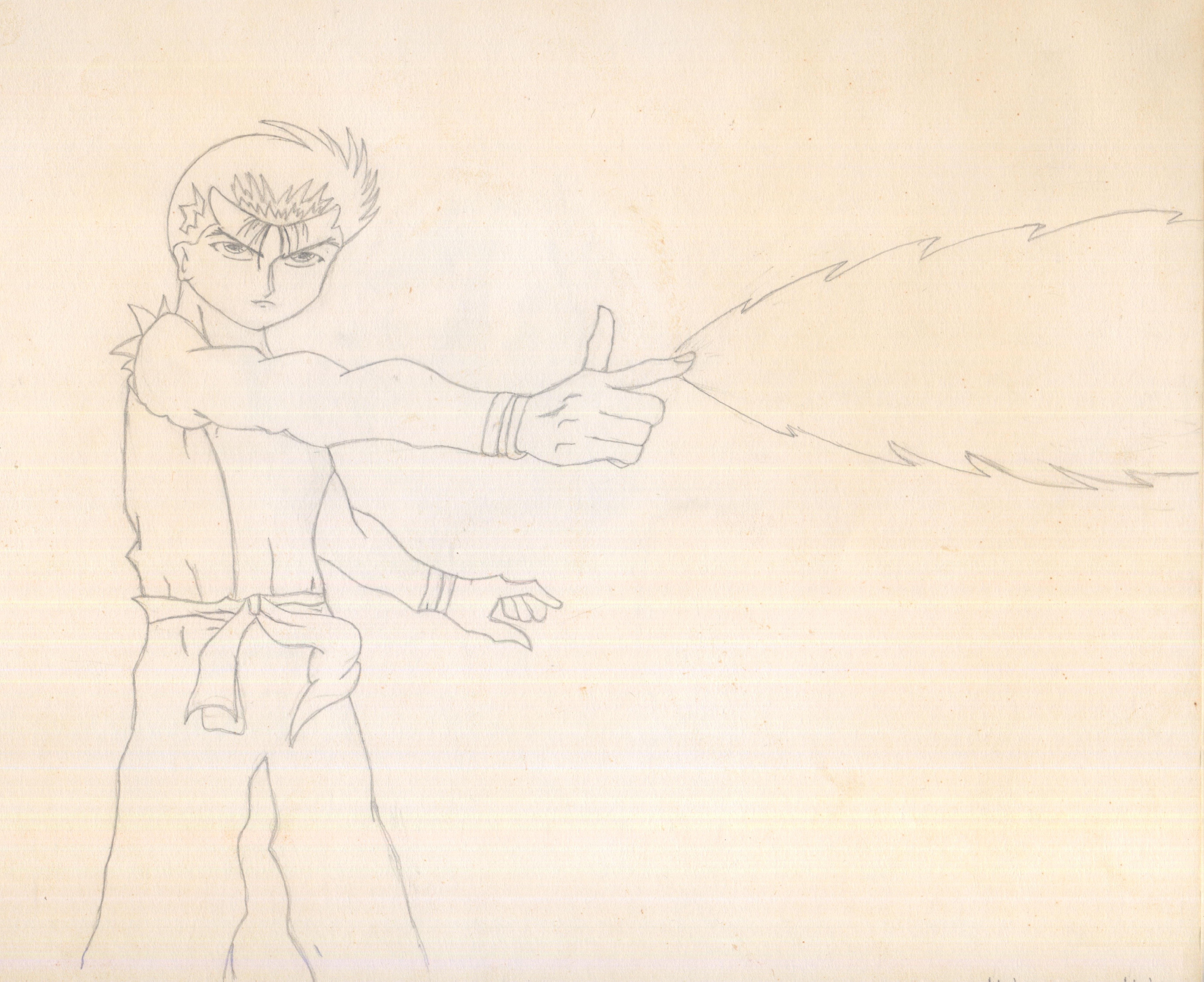 Yusuke Urameshi protagonista principal del manga-anime Yu Yu Hakusho, recuerdo que grababa los episodios en cintas VHS y el reproductor del mismo, cuando era transmitido en el bloque Toonami por Cartoon Network. Este dibujo tiene como catorce años.