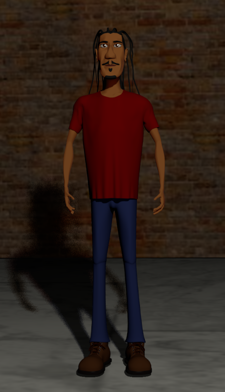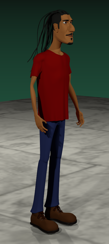 Now, full size! For the t-shirt, I used the clothes simulation modifier. I love that tool! By the way, have you seen those shoes before?