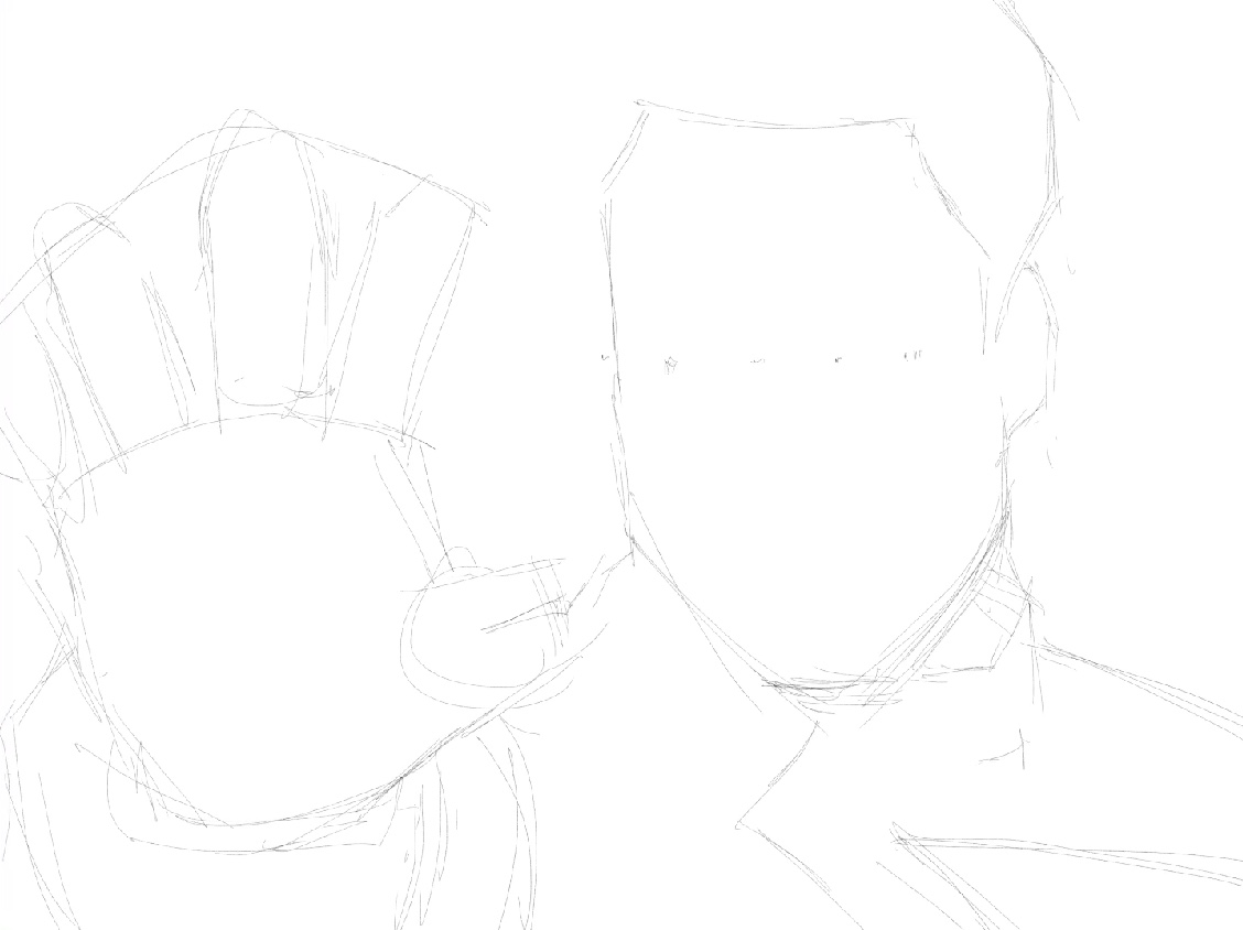First we block in the basic figure. Nothing too fancy, just get a general idea of where things will go on the canvas: