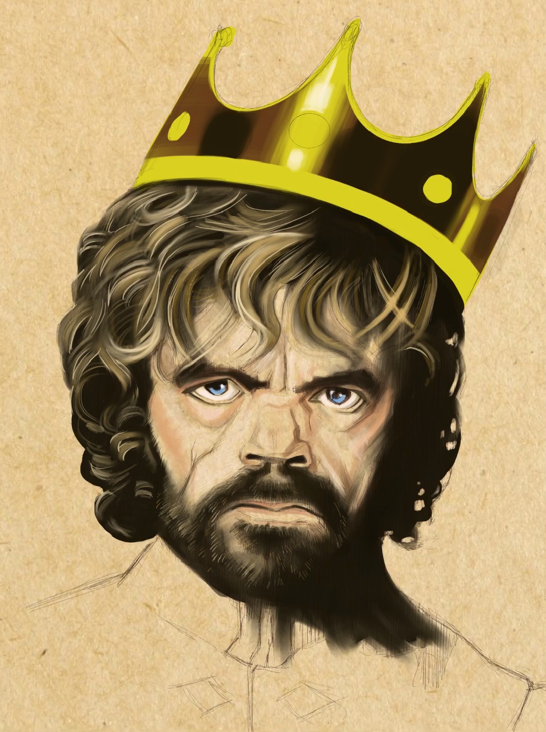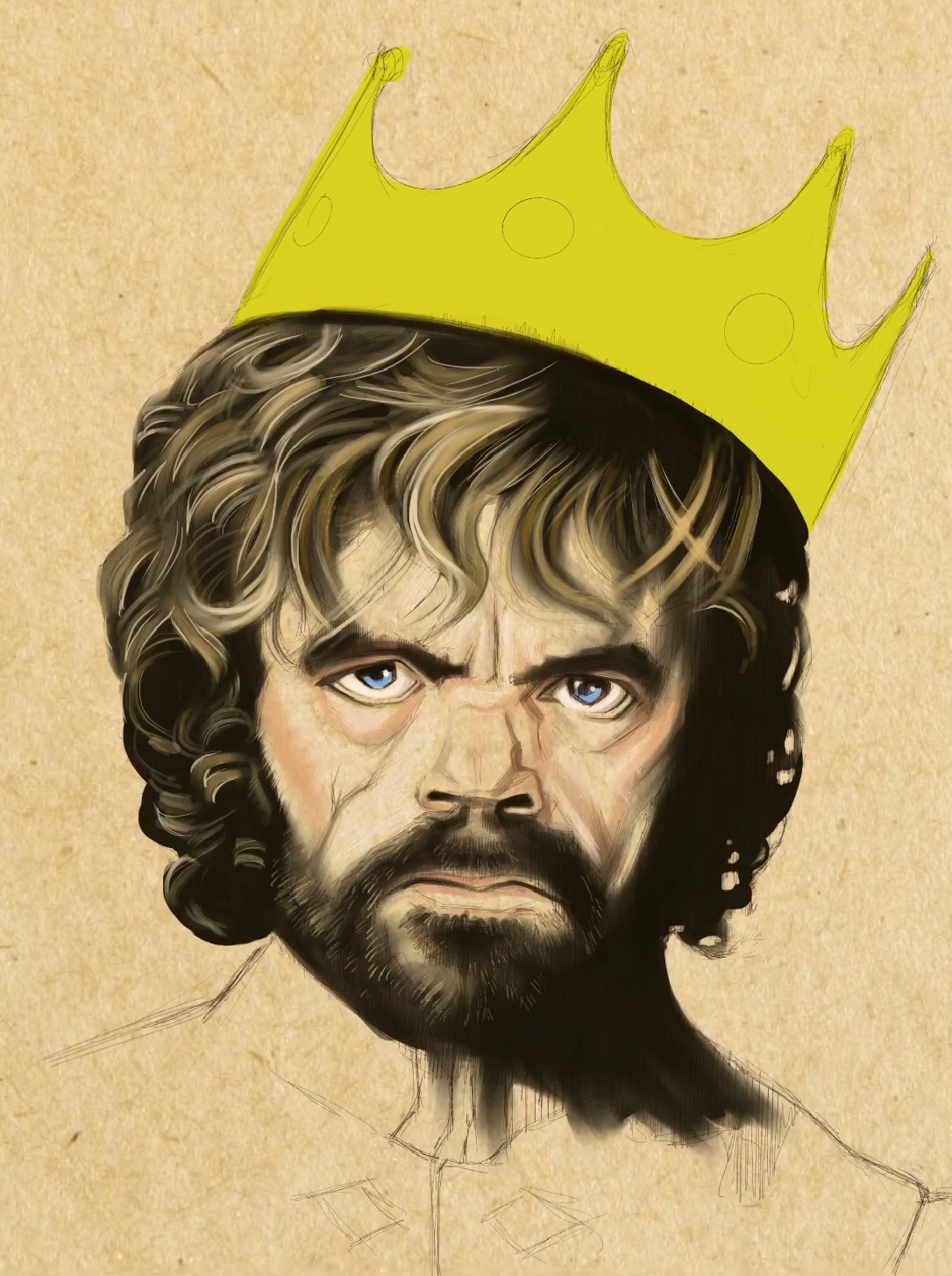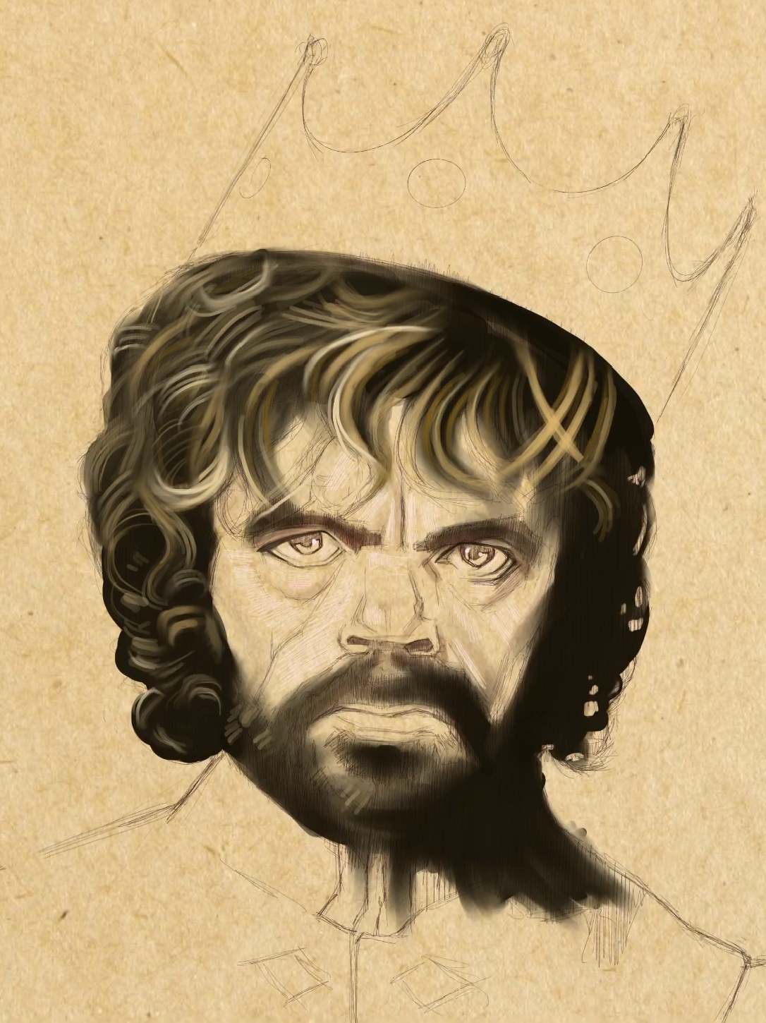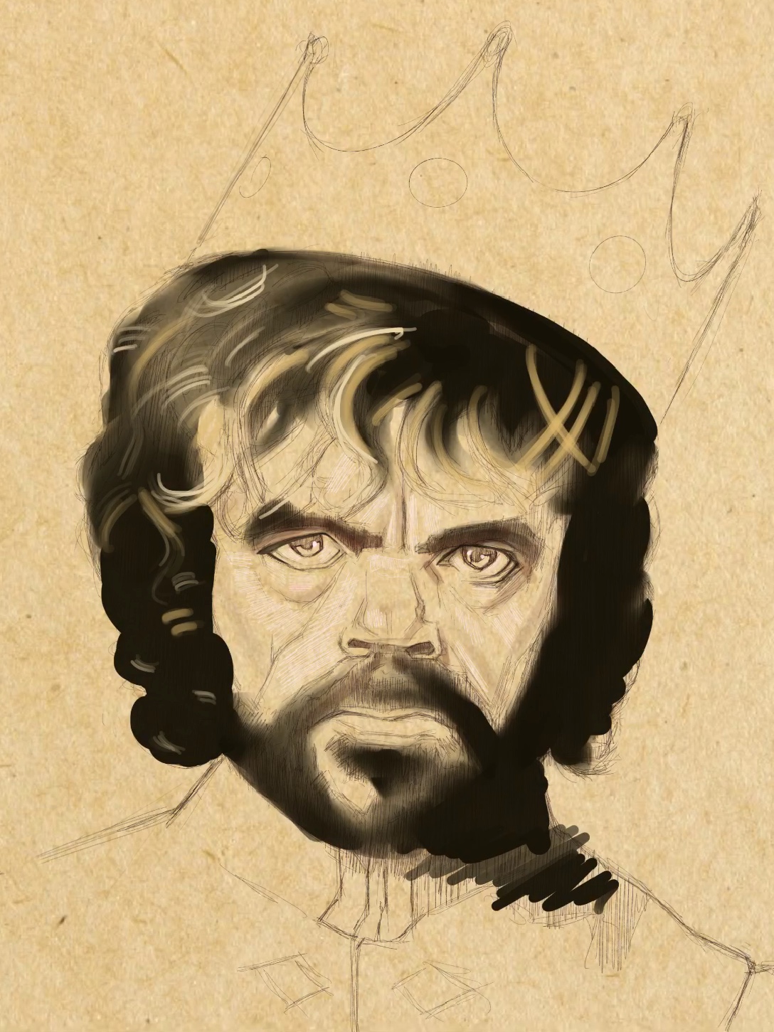 I chose a toned paper background. This serves as the base for Tyrion’s skin tone.