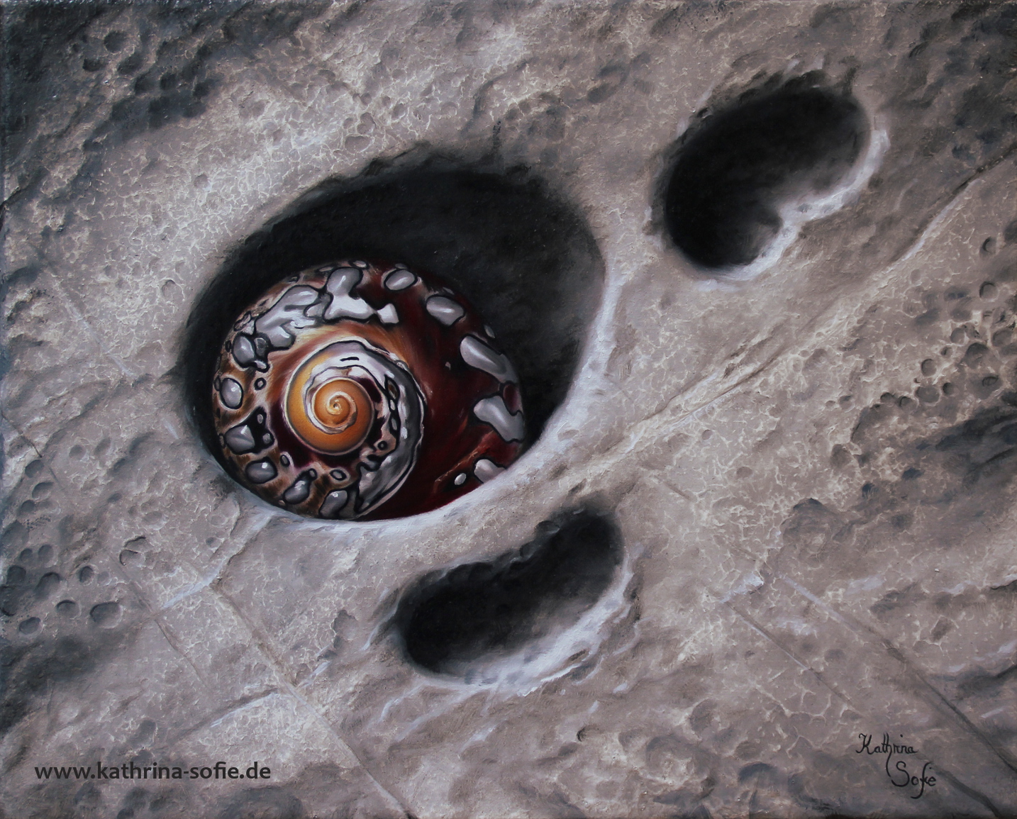 Oh, what a wonderful painting, @kathrina-sofie :) I love the contrast of the beautiful dark golden shell against the more neutral canvas :) I remember as a child, I used to put the 'treasures' that i had found in special places, so as to save them, because my parents wouldn't let me bring home things....
