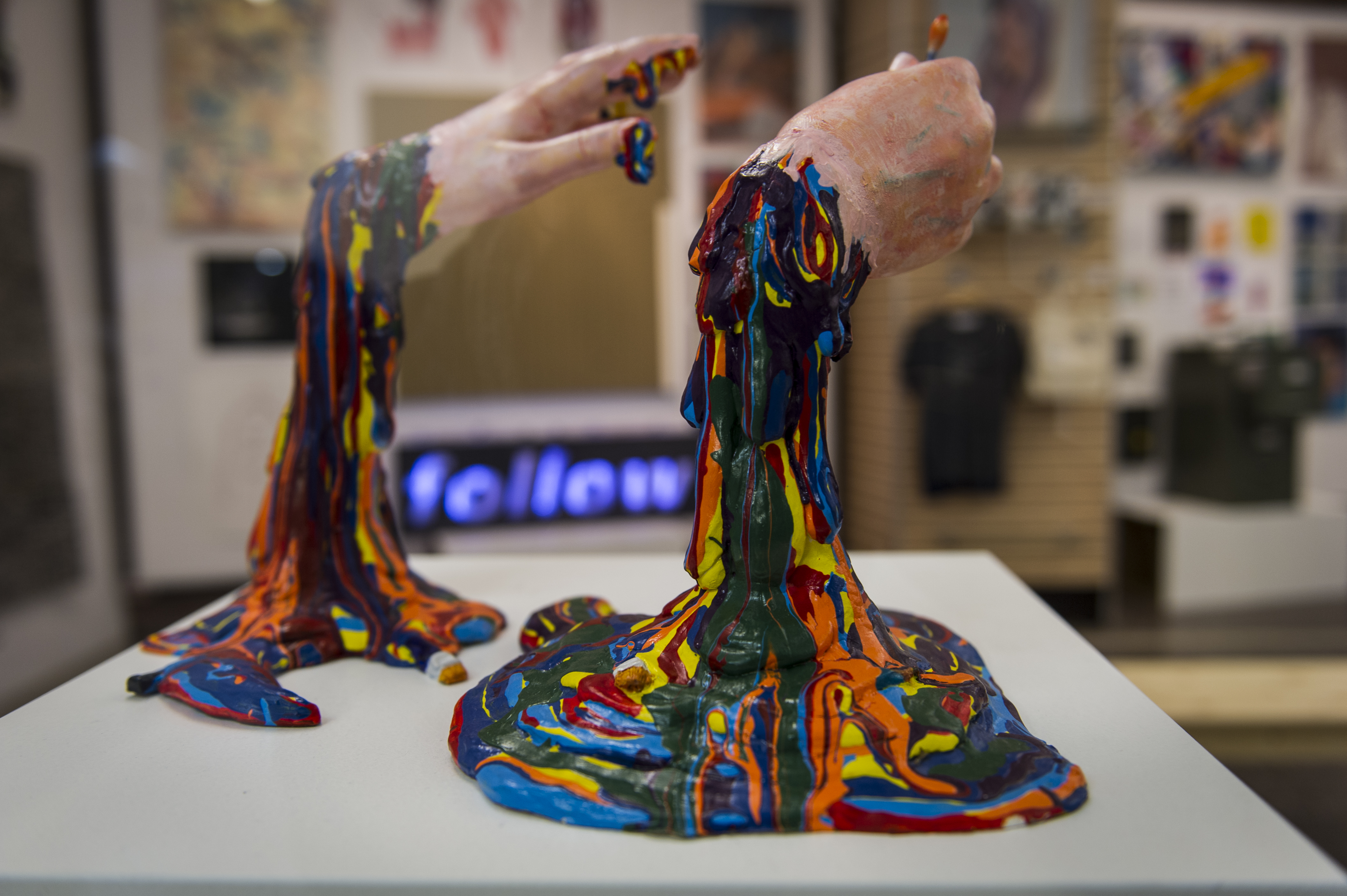 Interesting work. I think it would be a cool idea to do something similar but, with the hand extended upward holding a lightbulb and have it be a fully functional lamp. :)