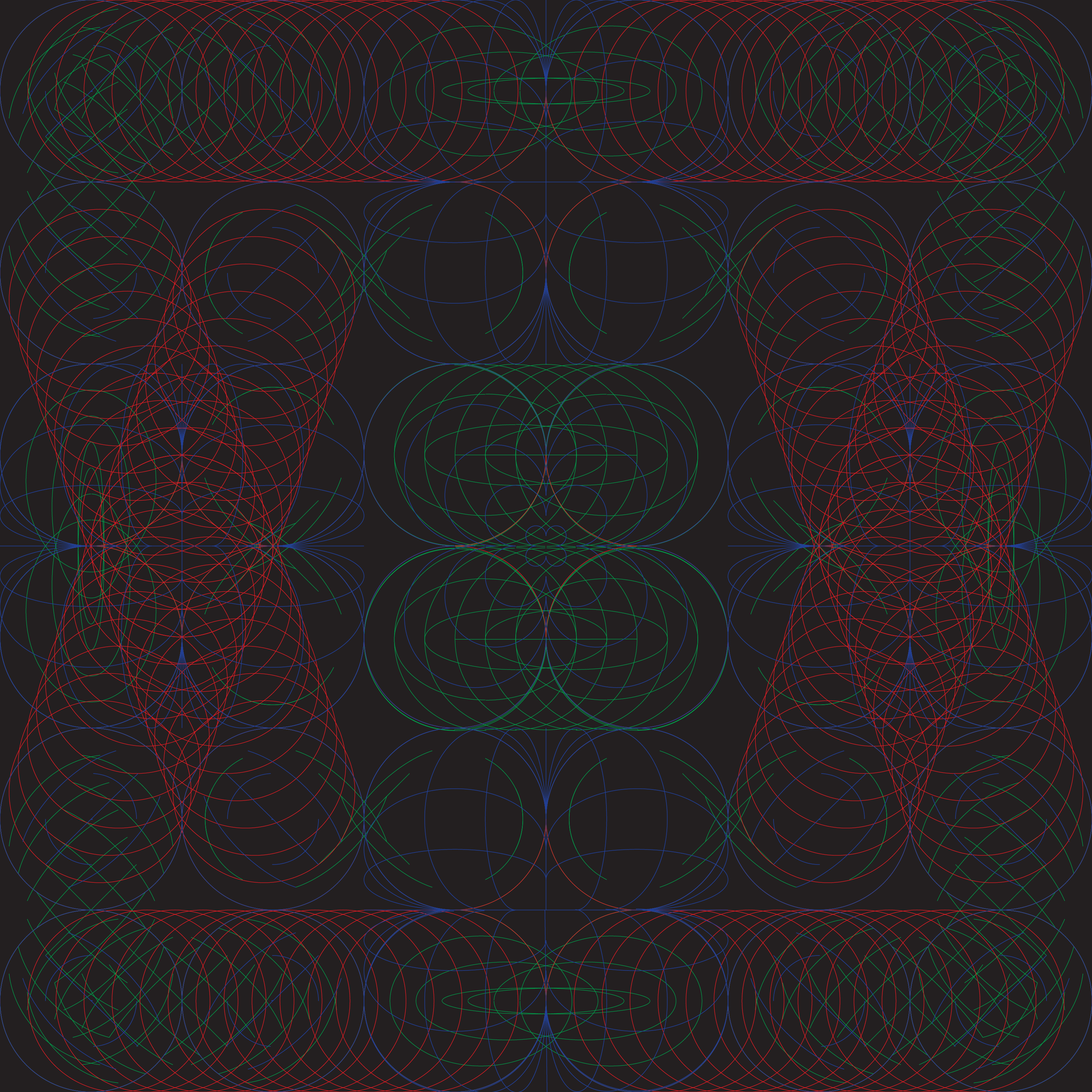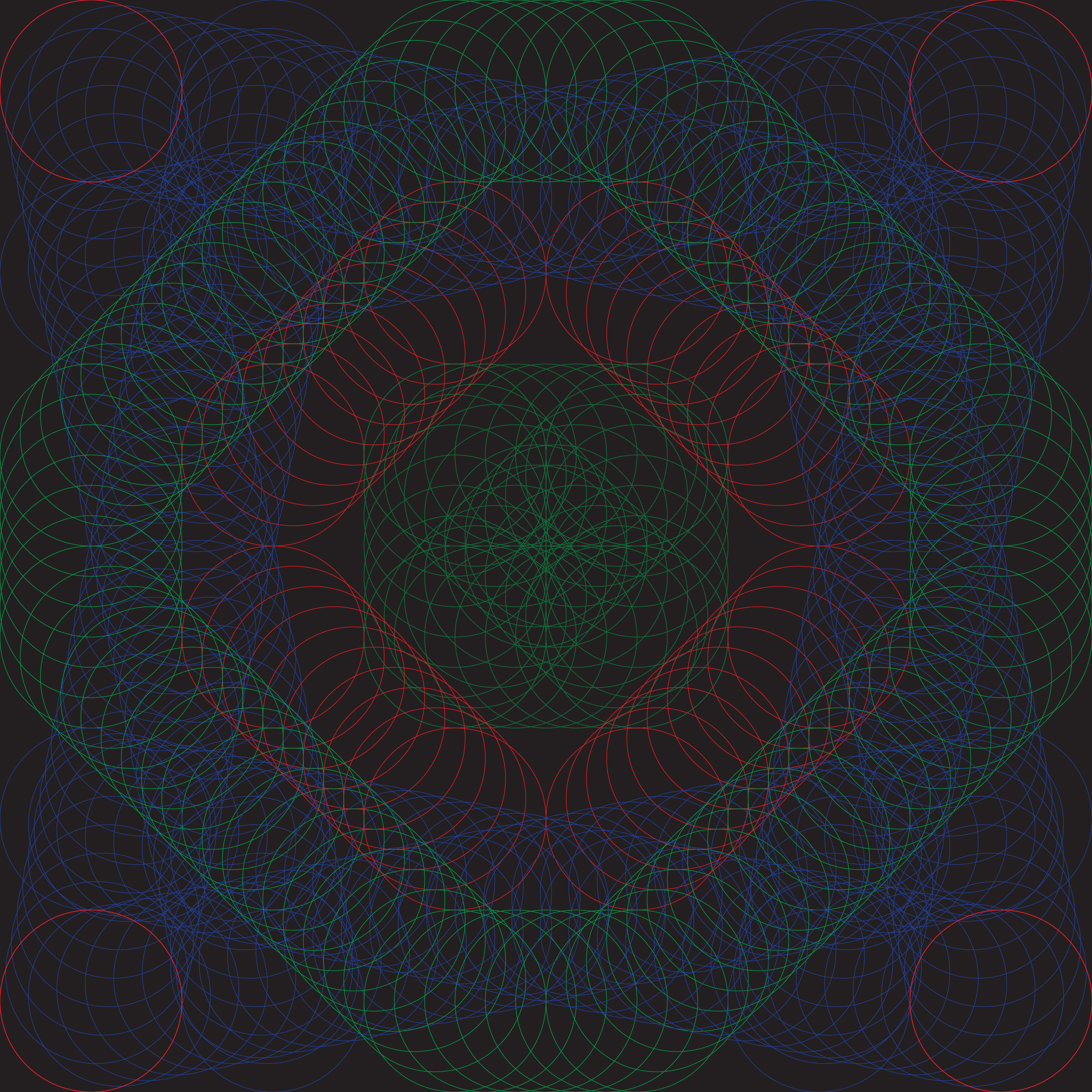 I'm on a roll lately, shifting my line work/play into a colorized mode, mainly using the classic triad of colors Red Green and Blue. I played a lot with circles using different manipulations, hence the name of the first series, Circus Permutations. I also played with some straight lines, stepping out of RGB mode for the last piece... Enjoy!