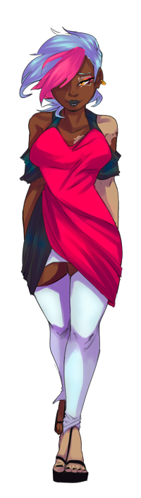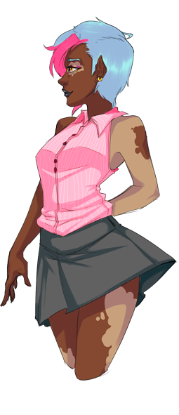 Your character (which has vitiligo) is beautiful. I just watched Deadpool 2. One Marvel character called "Domino", which in the comics is Caucasian woman and has a black, heart-shaped tattoo around one eye, in the movie is an African-american woman with a white vitiligo patch around the eye. She kicks ass and is hot.