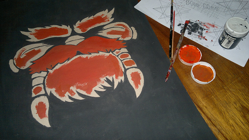 Luego de pintar los bordes del dibujo, pinta por completo el espacio faltante. Cuando termine de secar, mezcla un poco de pintura marrón con la pintura naranja para crear un color teja y pintar todo el dibujo con mucho cuidado.