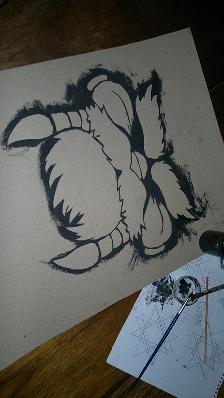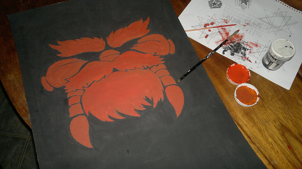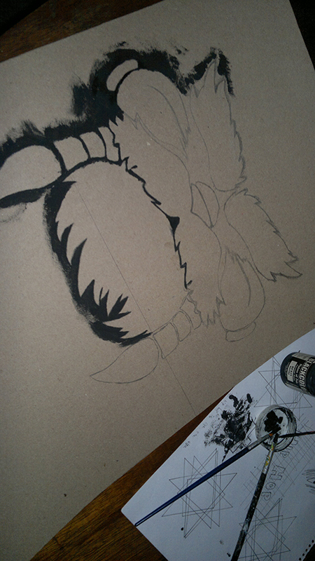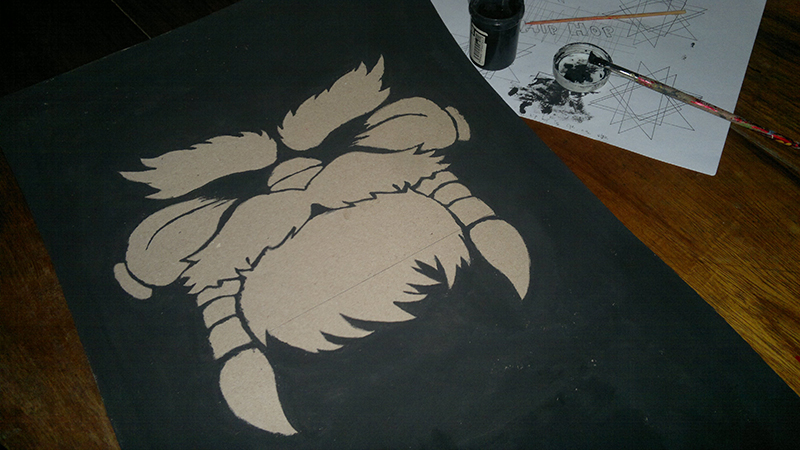 Una vez realizado el dibujo en el cartón, procedemos a pintar los bordes, con cuidado de no pintar el dibujo usando el color negro.