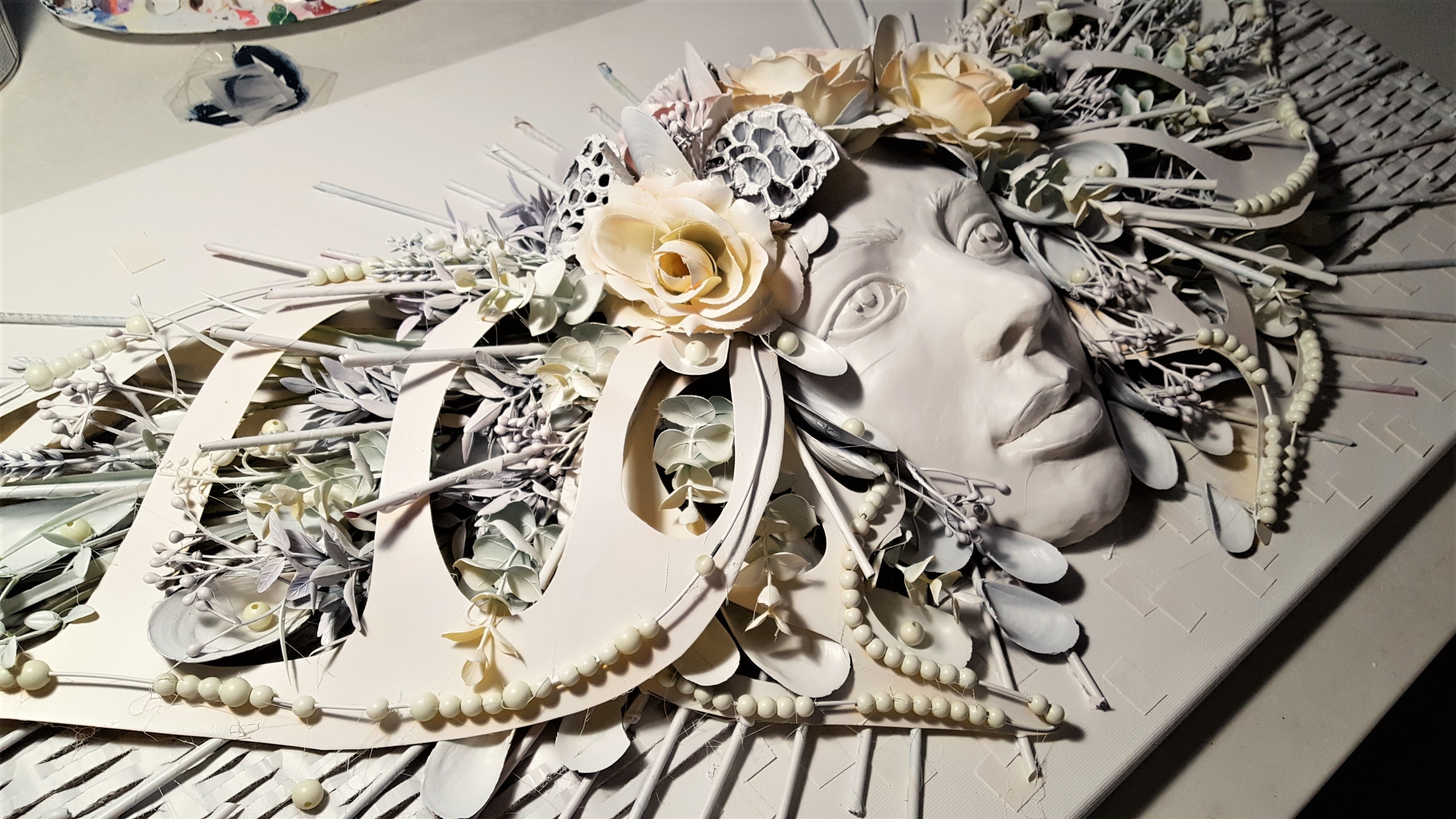 Hi everyone, I started this collage a few days ago. As you can see it is almost done. I have to paint it a bit more, add some different colors and highlights. I still don´t know what colors I should use for this one. Maybe I will stay in pale shades.