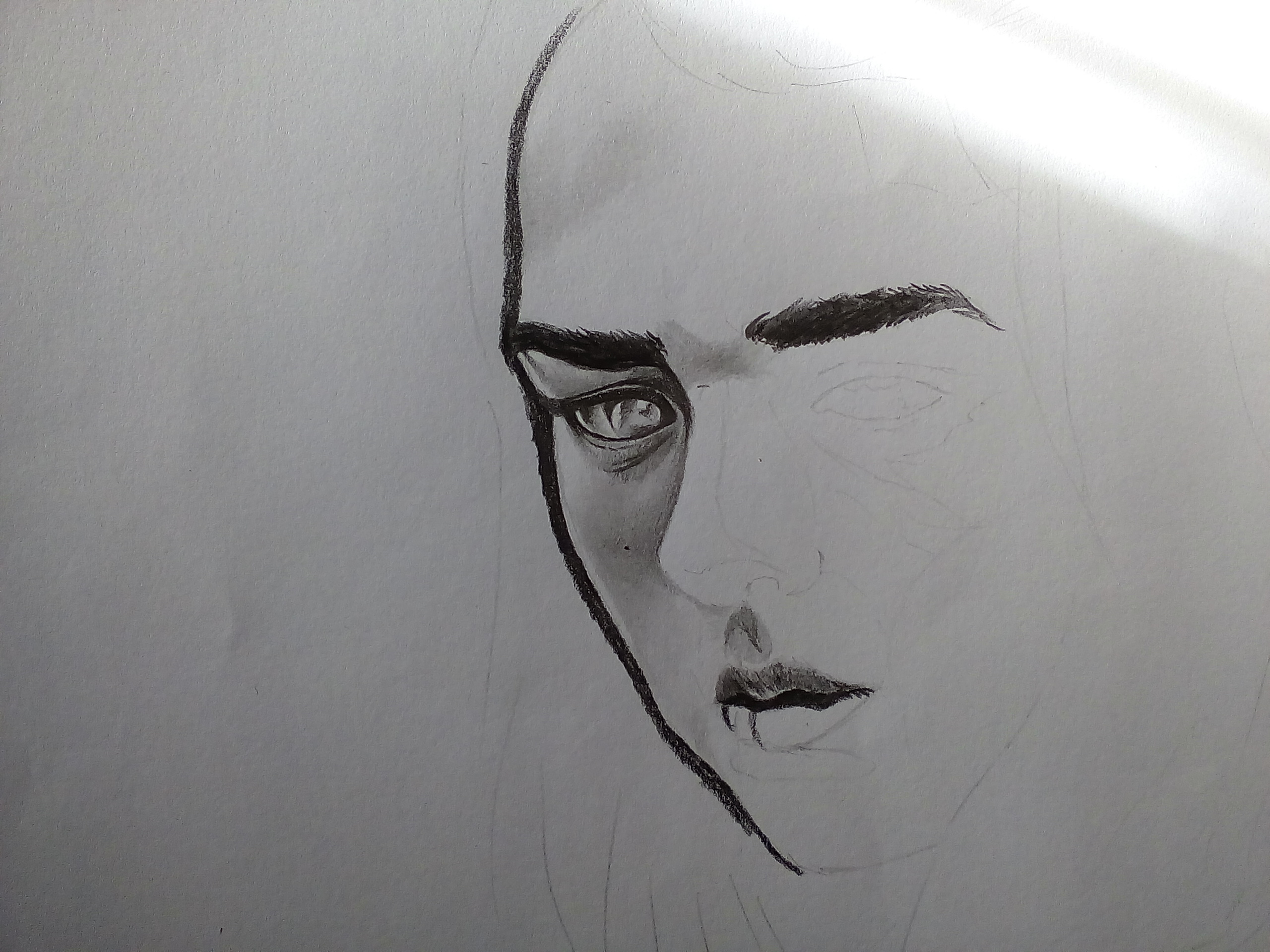 in my previous post i shared a very little progress of this and asked if anyone could identify the picture. no one could, thats probably because there was so little drawing for anyone to understand. anyway lets see if anyone can identify this now, if no one can that means i messed up with the face......