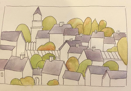 If you are not an artist but would like to try your hand at it, I encourage you to begin with watercolors. You only need them, a pen, a pencil and an eraser and off you go!
