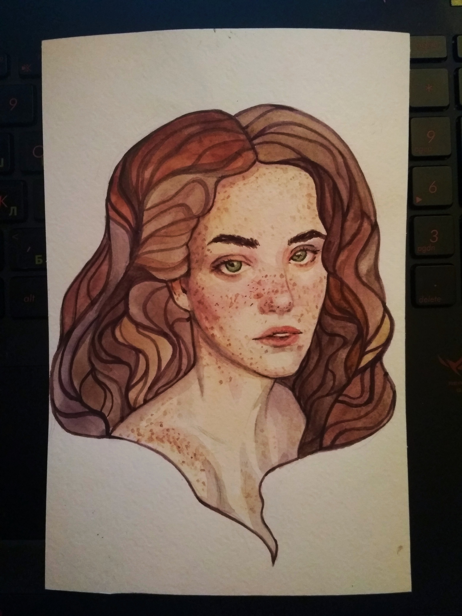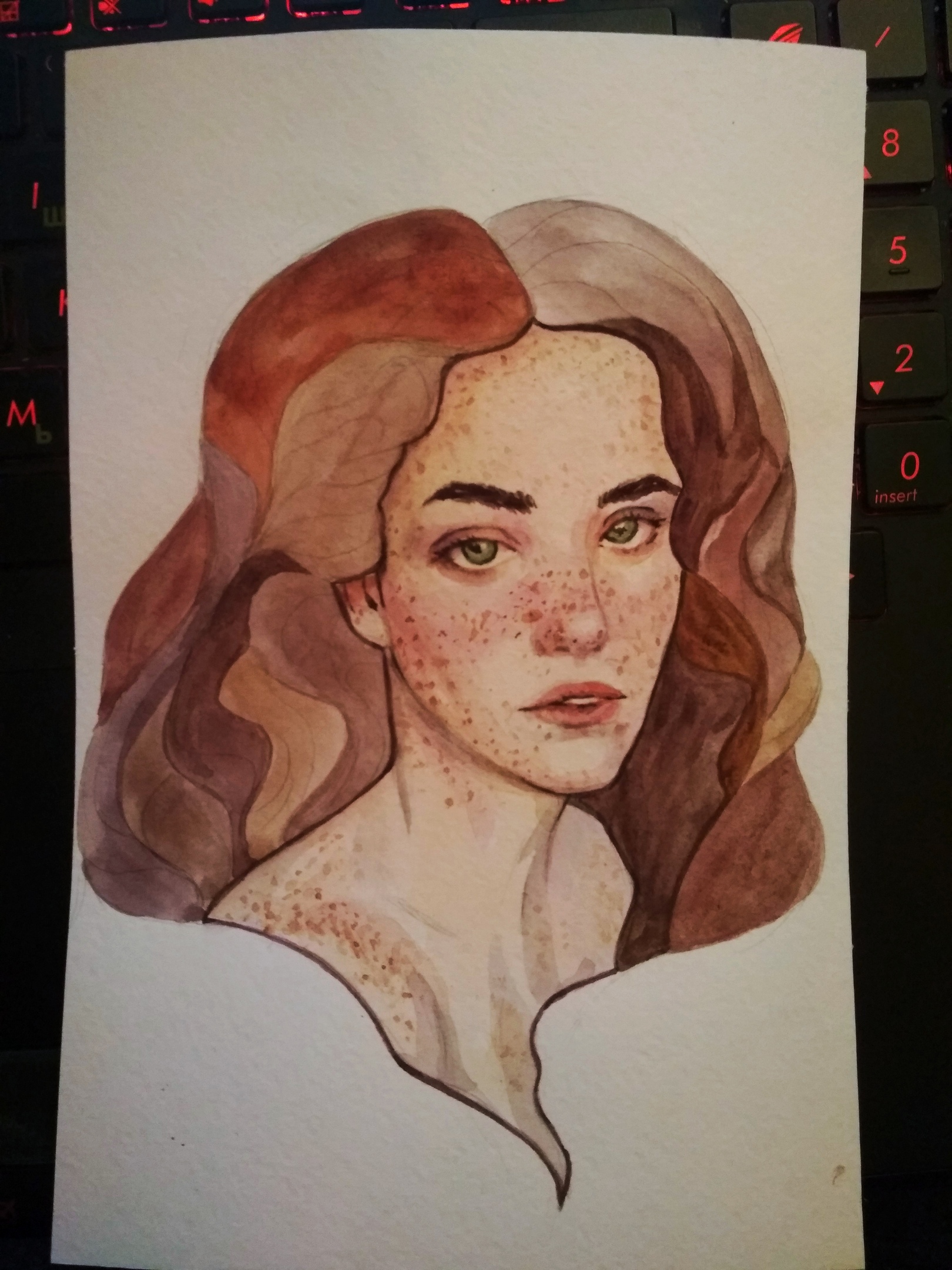 Spring has come and the sun is already warm. So far, no grass, only mud and puddles. This period is very similar to the middle of autumn. I like autumn, especially early, when everything is very beautiful. This portrait I painted it in the autumn range, maybe a little dark, but that's how I see autumn if she was a man. Also, I love freckles, they look very nice, I have none :( but I can afford to draw with makeup and be happy (´。• ᵕ •。`)