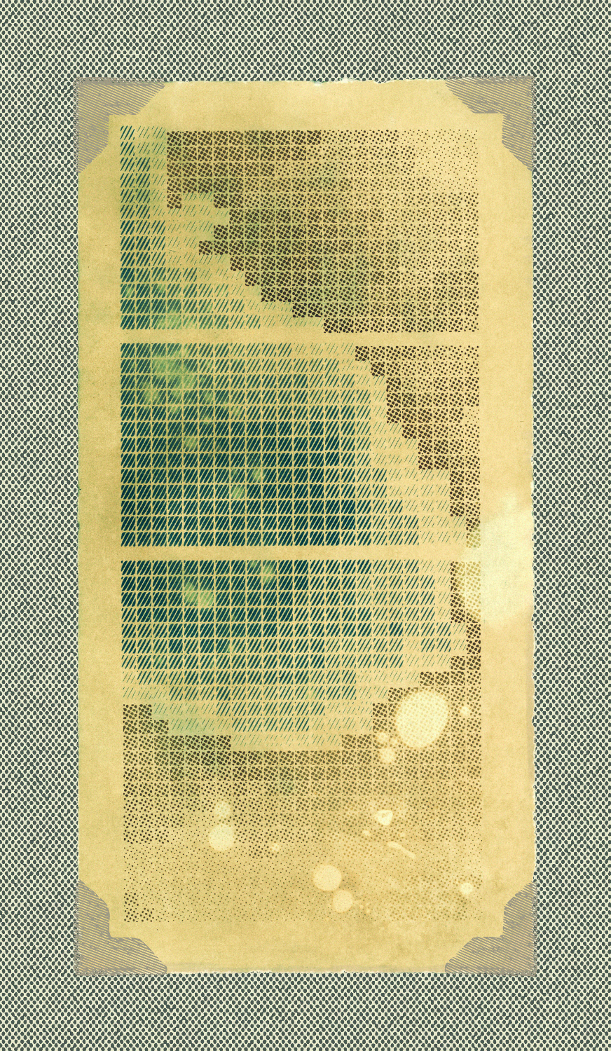 To print the two tone image, I had to split it in two negatives, apply the first layer of emulsion, expose it with the first negative, develop, bleach lightly and tone - in this case, with coffee and cinnamon. After it dried, I applied the second layer of the emulsion, exposed the second negative and developed it. The printing-toning-printing was made over three days. I then digitized it and slightly altered the tones, and added further vector graphics interventions to compose the final image, an ambiguous mix breed of analog and digital.