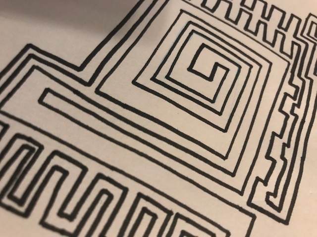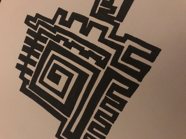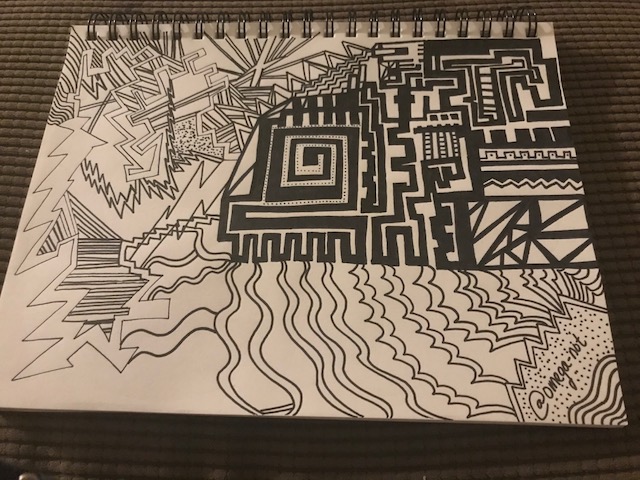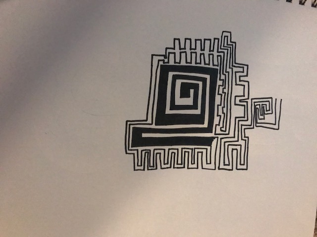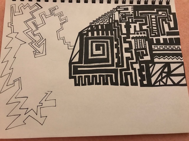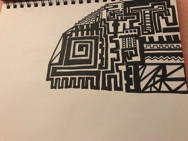 I started off with drawing a very orderly design, but as with anything that involves drawing something orderly, it looked kind of boring to me. I quickly began drawing with greater spontaneity, paying less attention to symmetry and neatness. I think it served as a good contrast because it looks as if the discord emphasizes the order.