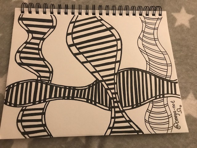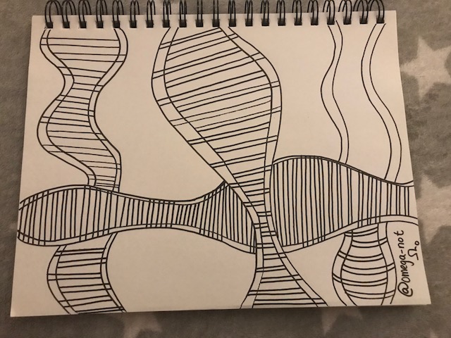 It's a very simple design, but it just confuses my eyes! I kind of like that about this art piece and I want to work on drawing more that are similar to this one.