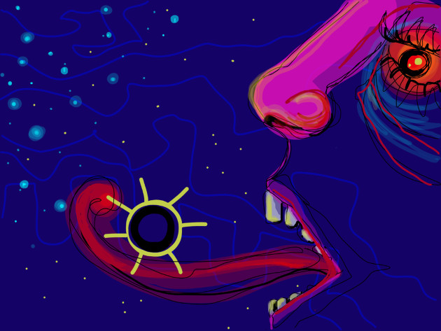 Today, I'm showing you the process of how I created a digital drawing on DADA called 'Tasting Cosmic Dust', the piece is inspired by the idea of floating star dust in space. The drawing is part of a very colourful visual conversation on DADA, that includes drawings by artists from all over the world. DADA is an amazing visual platform where people can speak to each other through drawings.