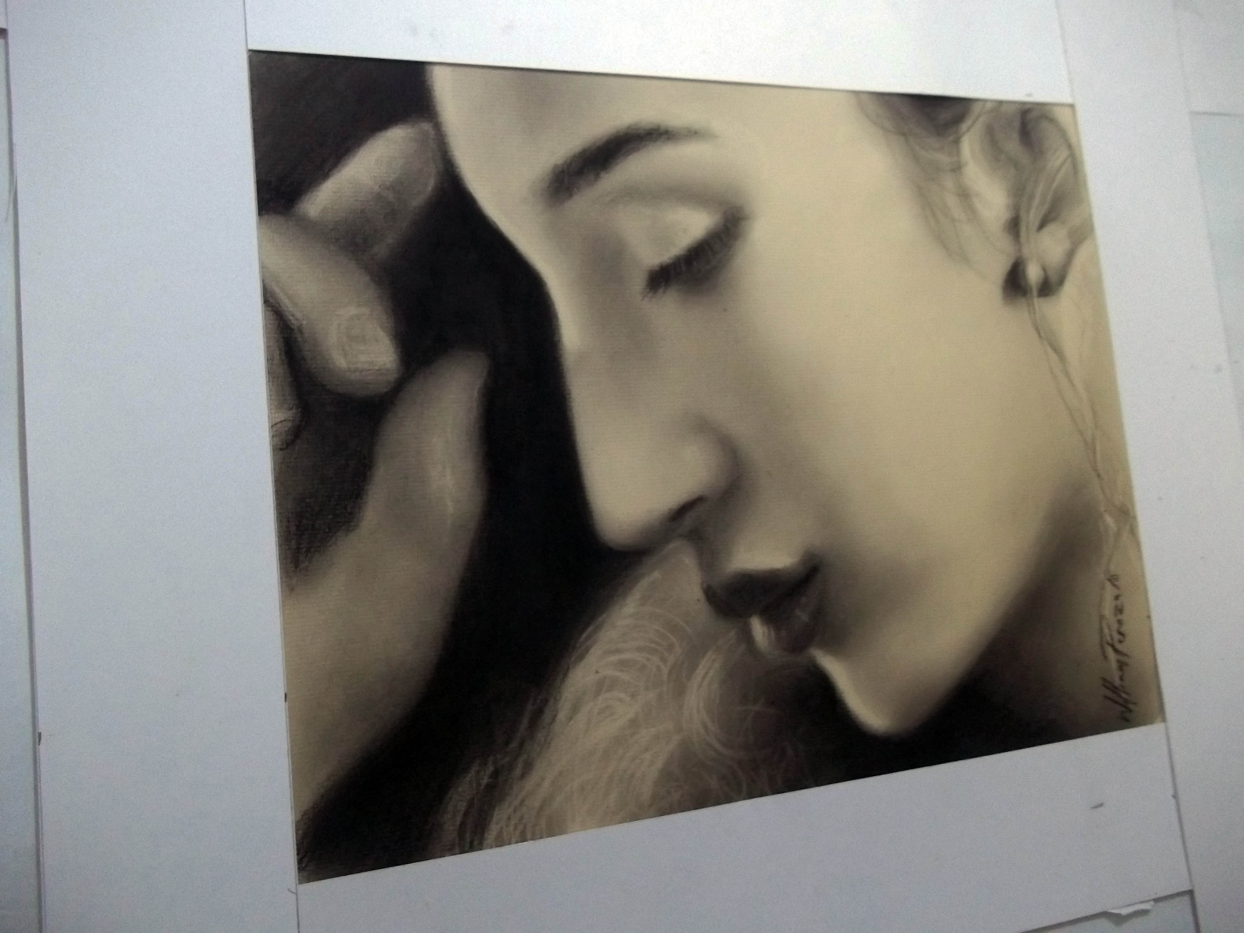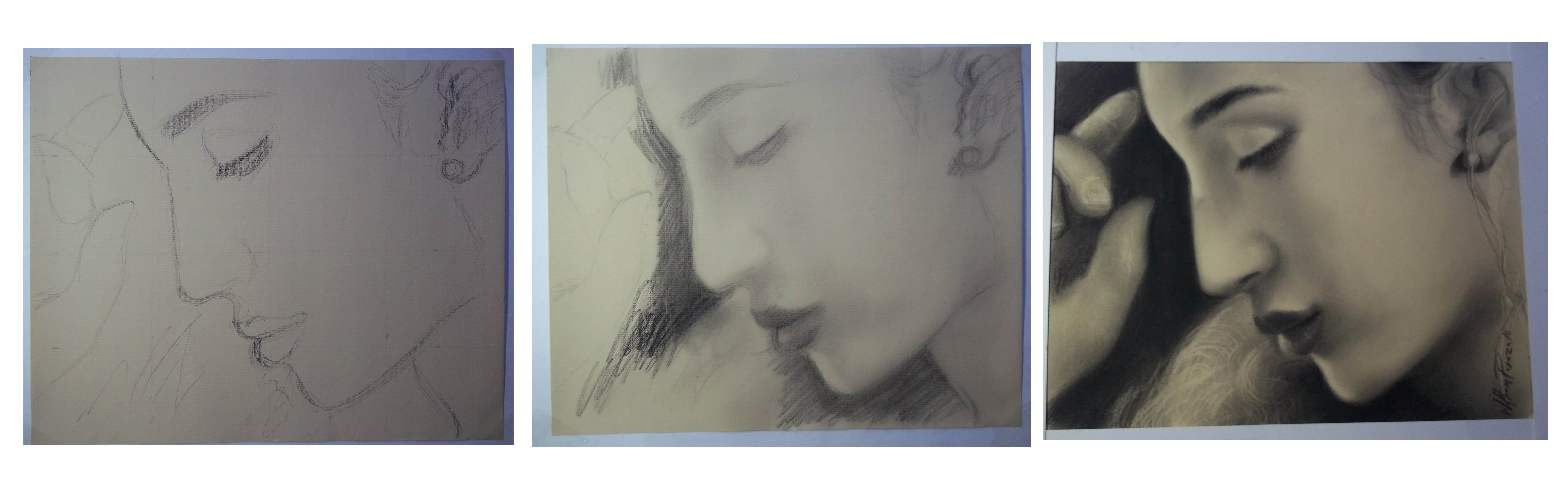 - Ingres fabriano paper, soft 4b and 6b charcoal, cotton, Kneadable eraser.