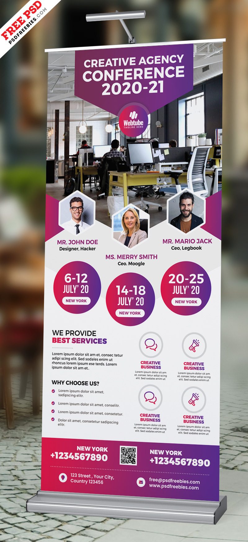 This Business Conference Roll-up Banner PSD is available for Free Download.