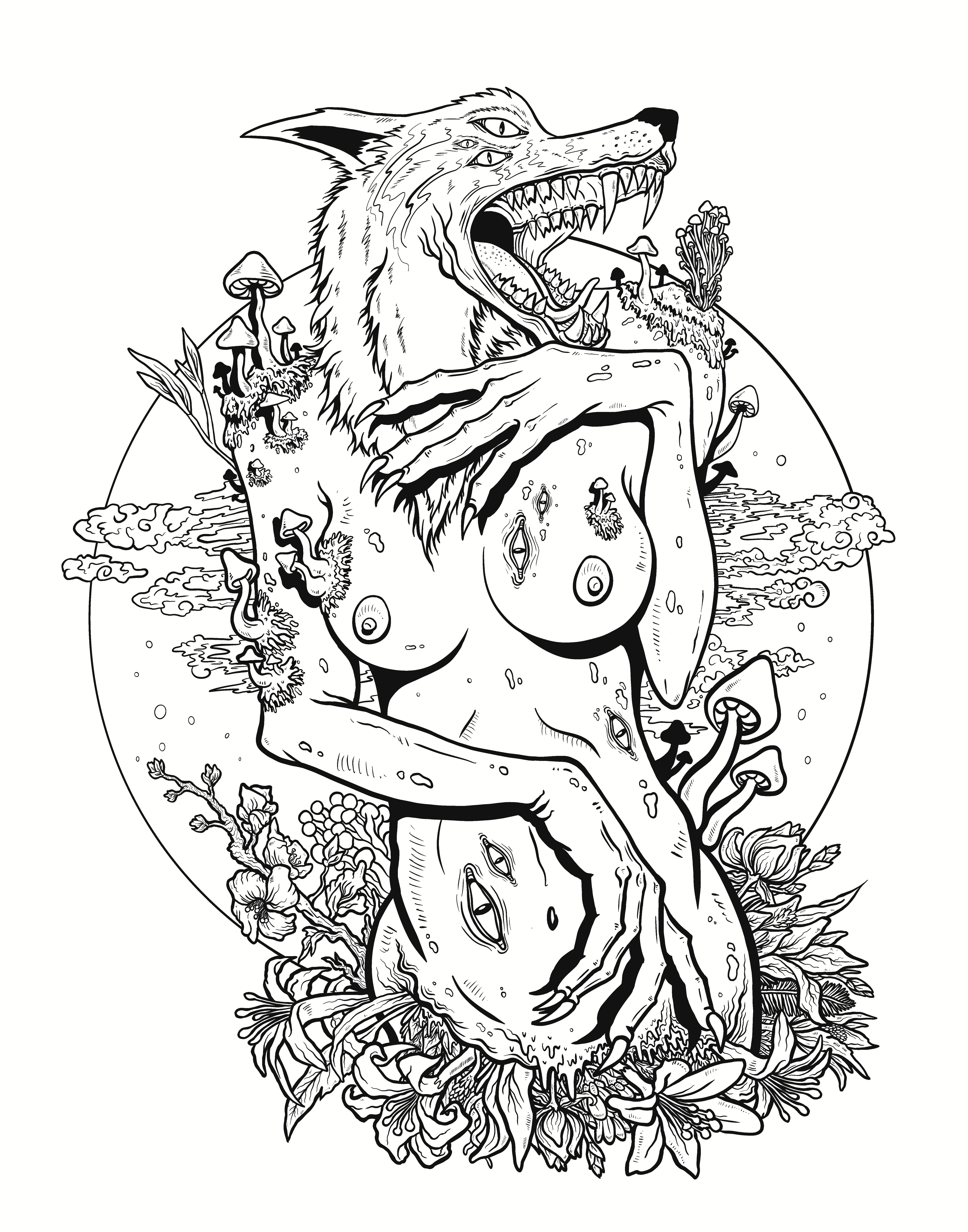 Finished linework for the werewolf girl!!psyokami (29)in #art • 4 years ago Really happy with how this one turned out!!! What do ya think?? ....alright, time to add color! :) #werewolf #wolf #mushrooms #digitalart