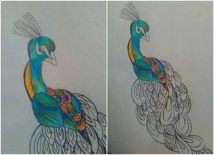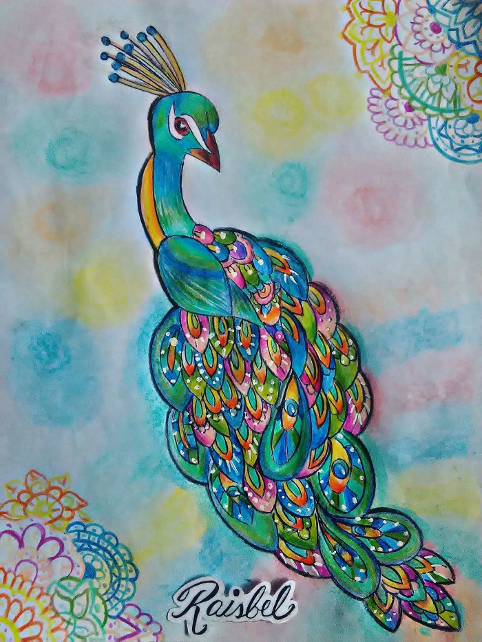 Hello, today I want to share my latest illustration of animals, this time I bring you a peacock. This bird is known for the range of beautiful and striking feathers that males have to court the female.