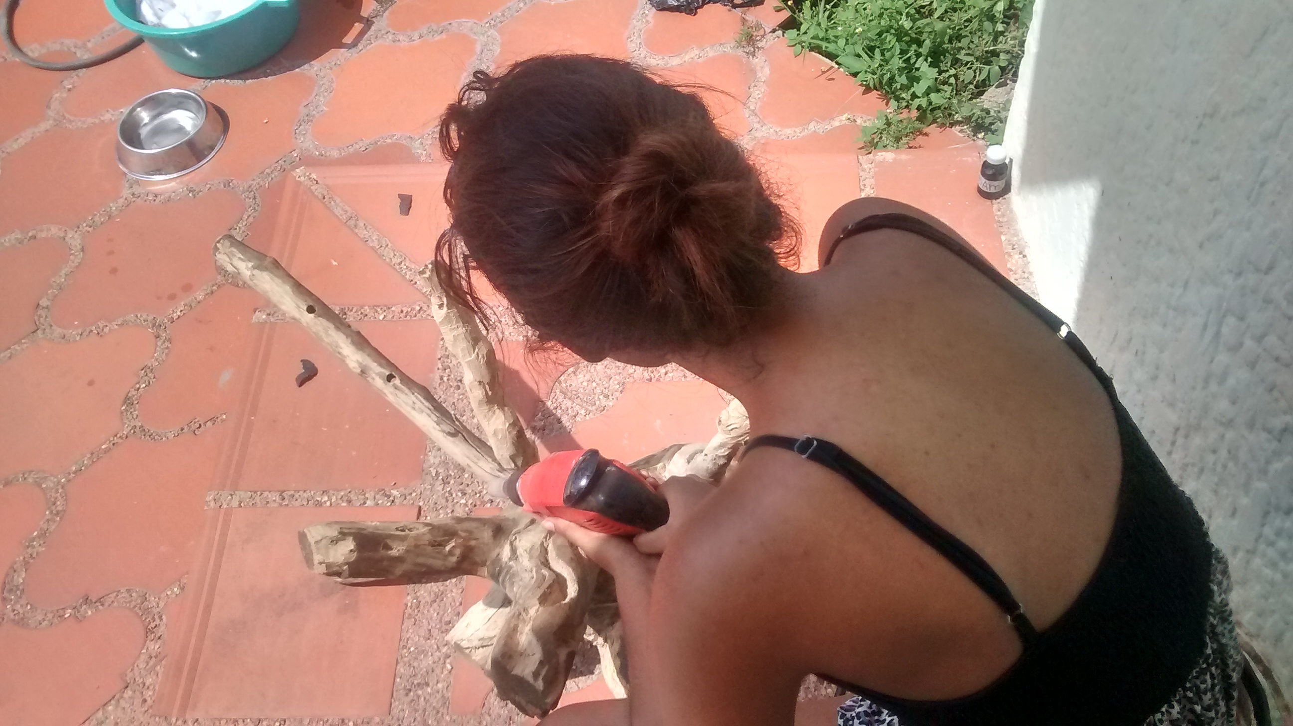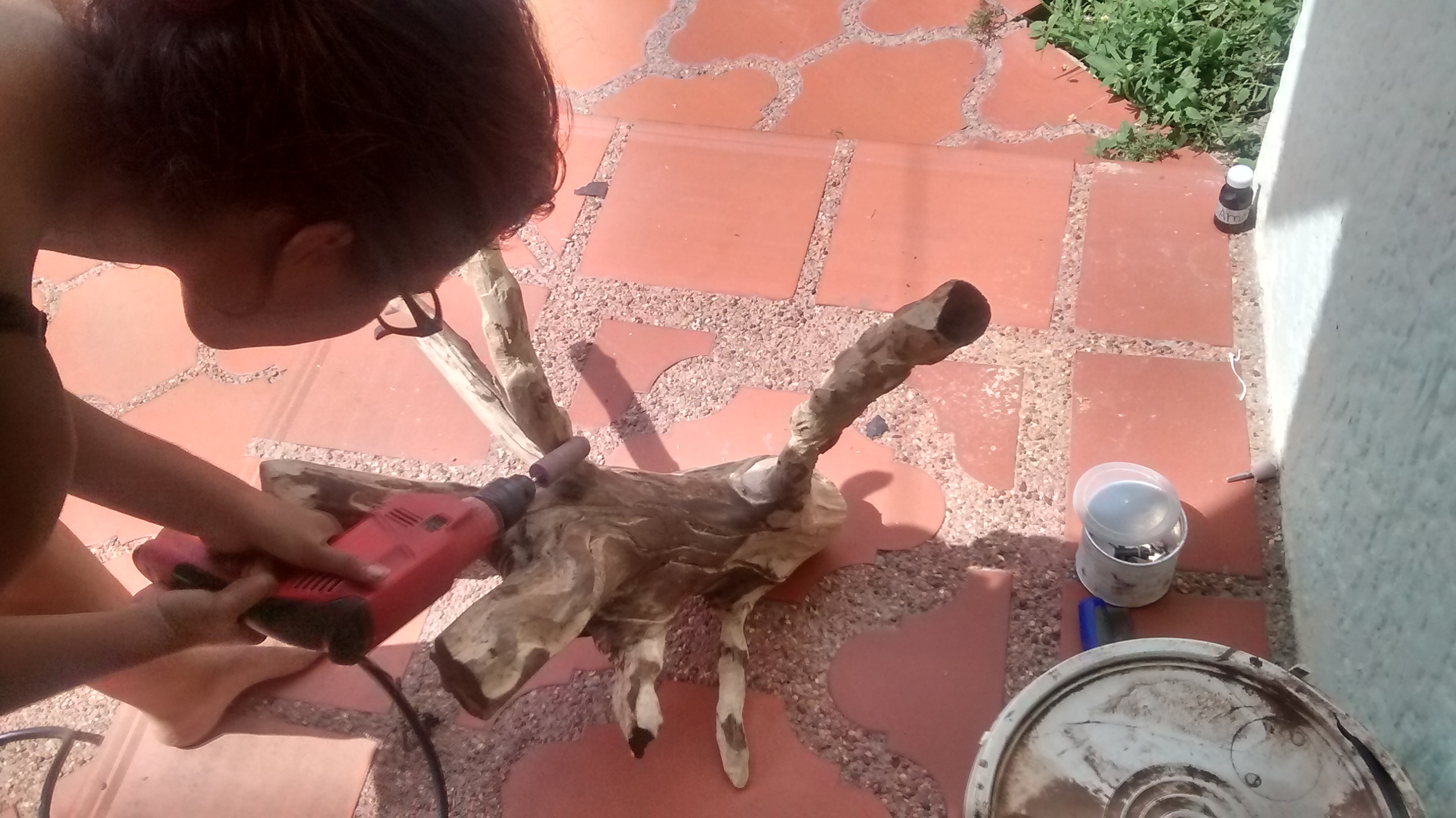 opción fue el taladro cambiándole las piezas de lijado dependiendo de la superficie,