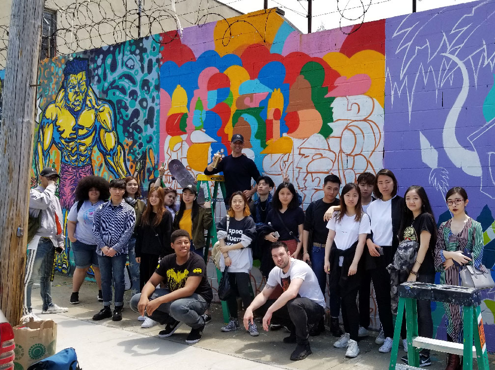Step 6 - Chat with Charlie Ahearn and his class! As you know, Charlie is the creator of the hip hop American class graffiti film: Wild Style. Charlie brought his summer class from the School of Visual Arts to visit Welling Court while a lot of the artists were at work. This gives the students a first hand insight into the process while asking questions and snapping some picts. I am always super grateful to share my process and meet new people. This was a great group of warm and insightful artists!