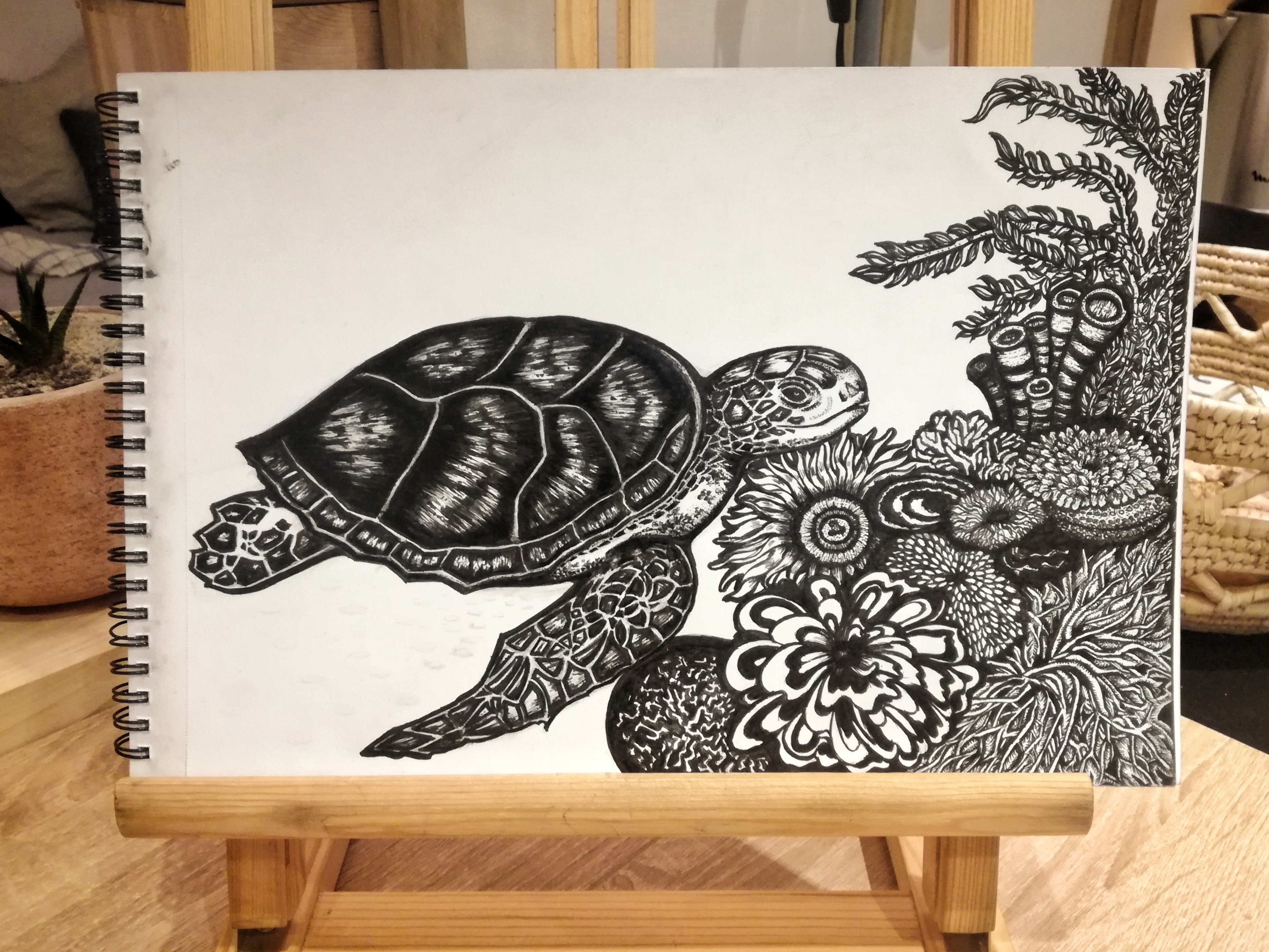 Blackand White SeaTurtles & Coralssaaab (51)in #art • 5 years ago Black China Ink #seaturtles #drawings #blackink #corals #creativity #oceanlife