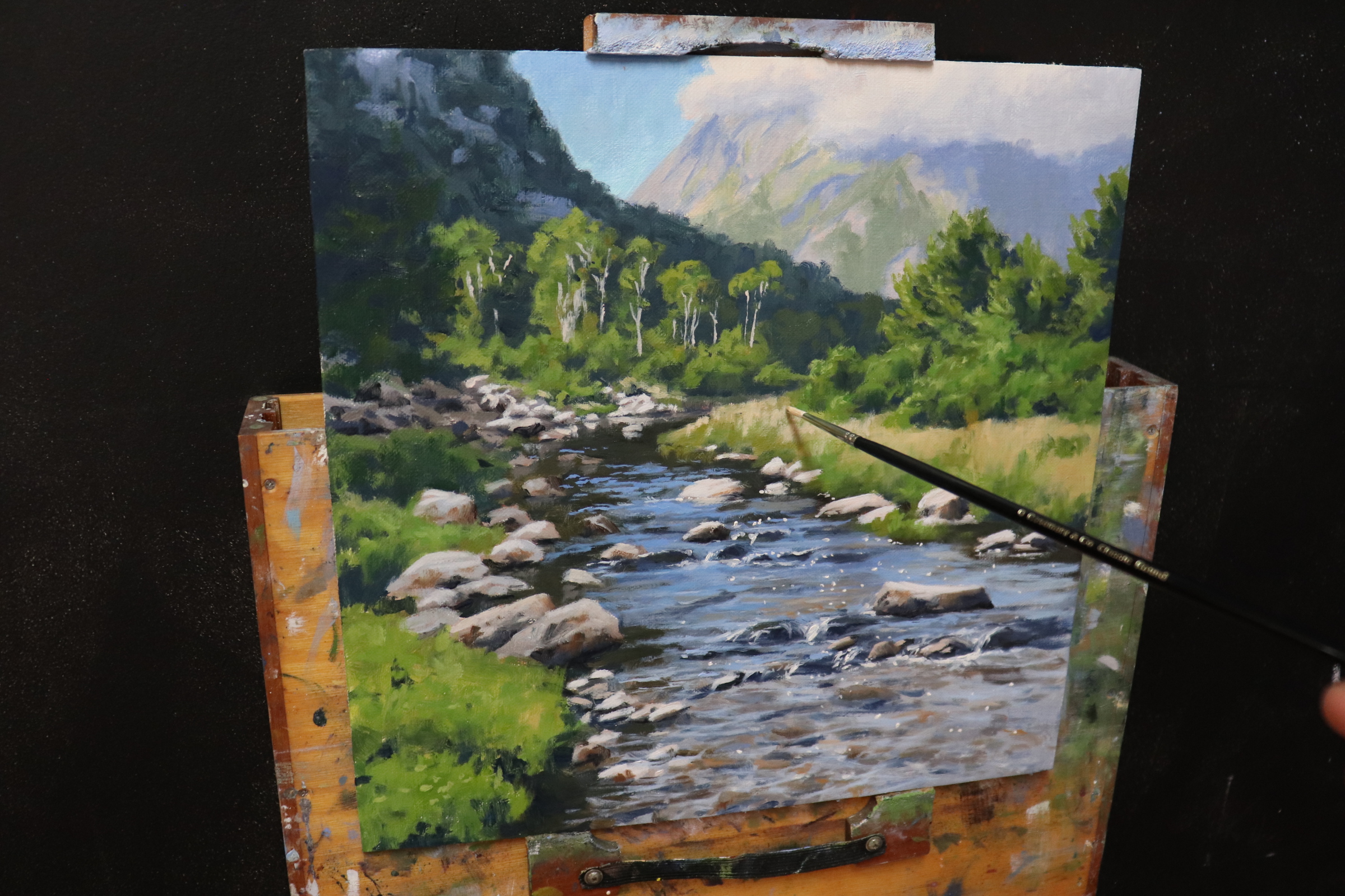 The river looks very natural and fresh. I loved the sparkles of the river and the randomness of the rocks. This nature painting is in its fully the raw. Good work :)