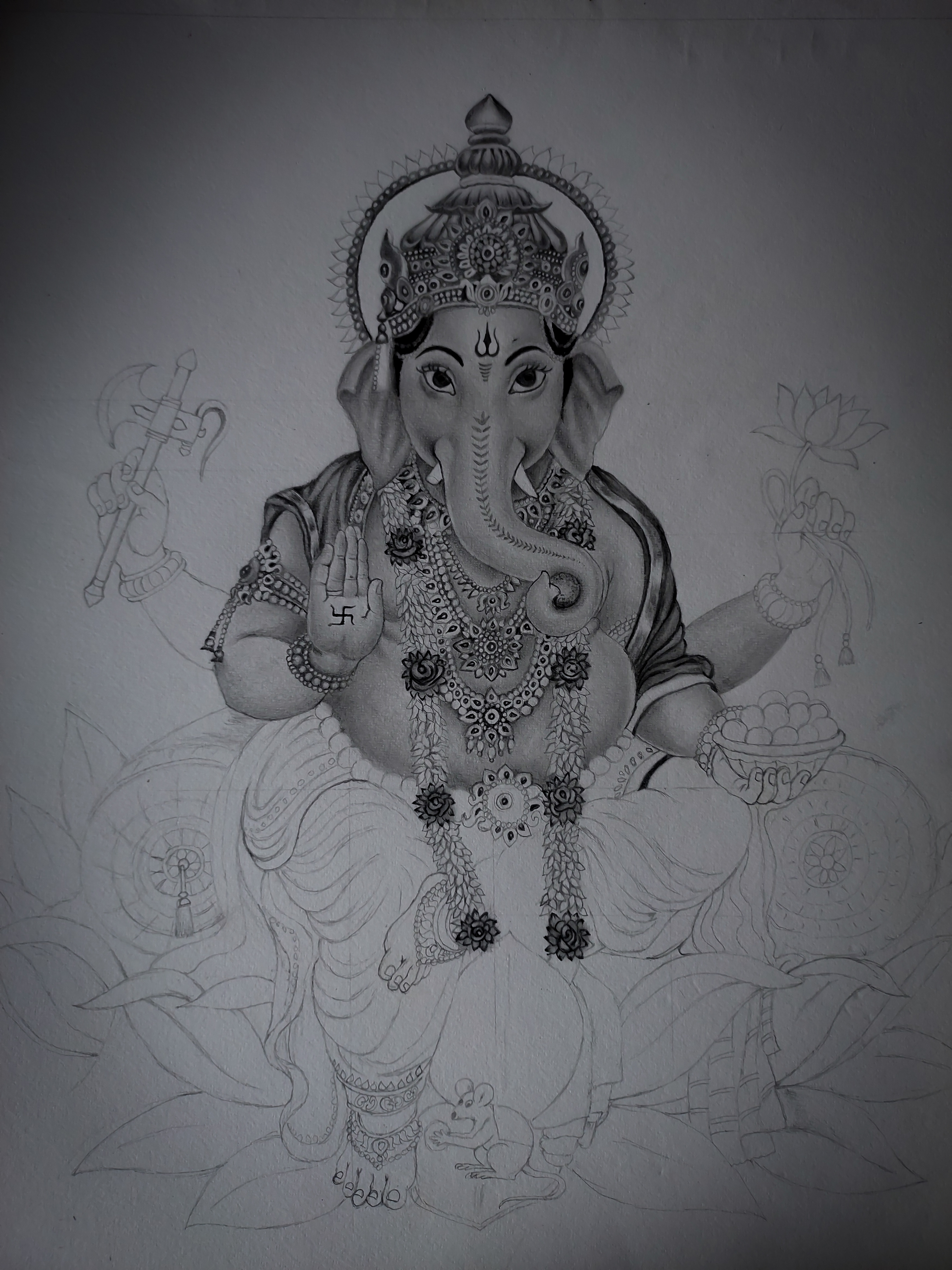 "Wow, what a wonderful collection of artwork! 😊 Lord Ganesha's sketch is stunning and I'm loving the behind-the-scenes pics too! 📸👍 You have such a unique style, Shubhamrajarts! 👏 Your creativity is truly inspiring. Let's keep spreading positivity and beauty on Steem! 💕🌈 If you like my content, consider voting for @xpilar.witness (https://steemitwallet.com/~witnesses) to help our community grow stronger"