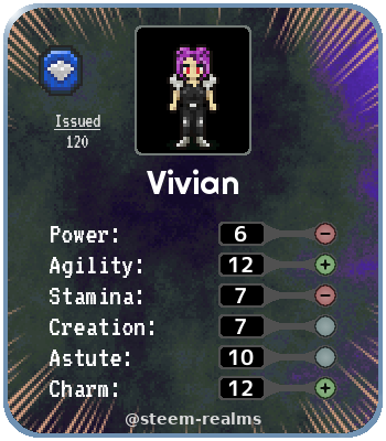 Every 30 days or so, we plan to issue a "Hero of the Month". These will usually be Uncommon to Legendary heroes with better statistics than common heroes. For the first month, we are issuing Vivian, a legendary agile and charming hero character. Being a legendary, only 120 will be issued. This is why she is also priced higher than the Genesis Heroes.