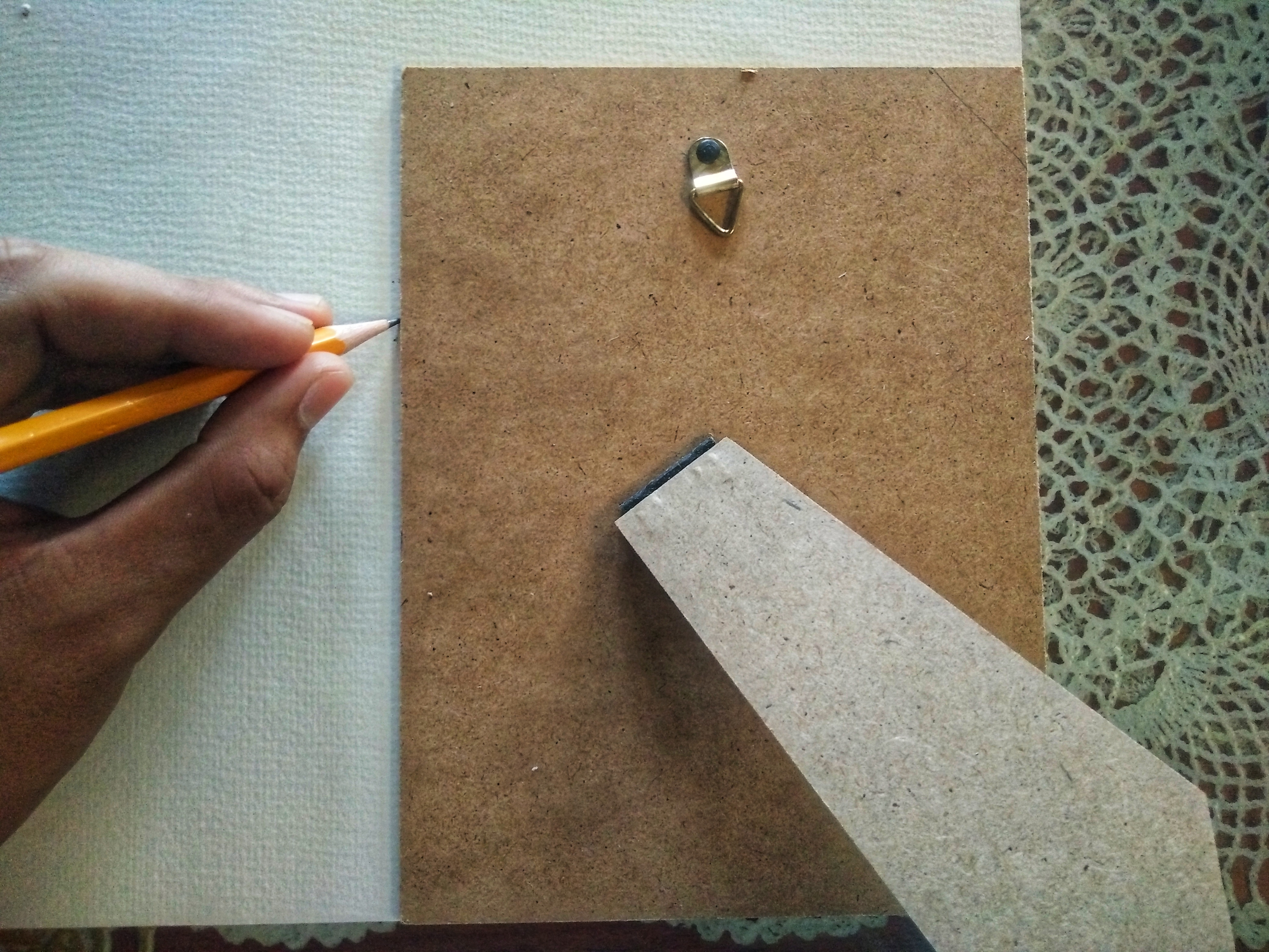 1.) Get your pencil and the back of the frame, plank it towards the paper, and trace it on the water color paper to come up with a 6x8 paper as our medium.