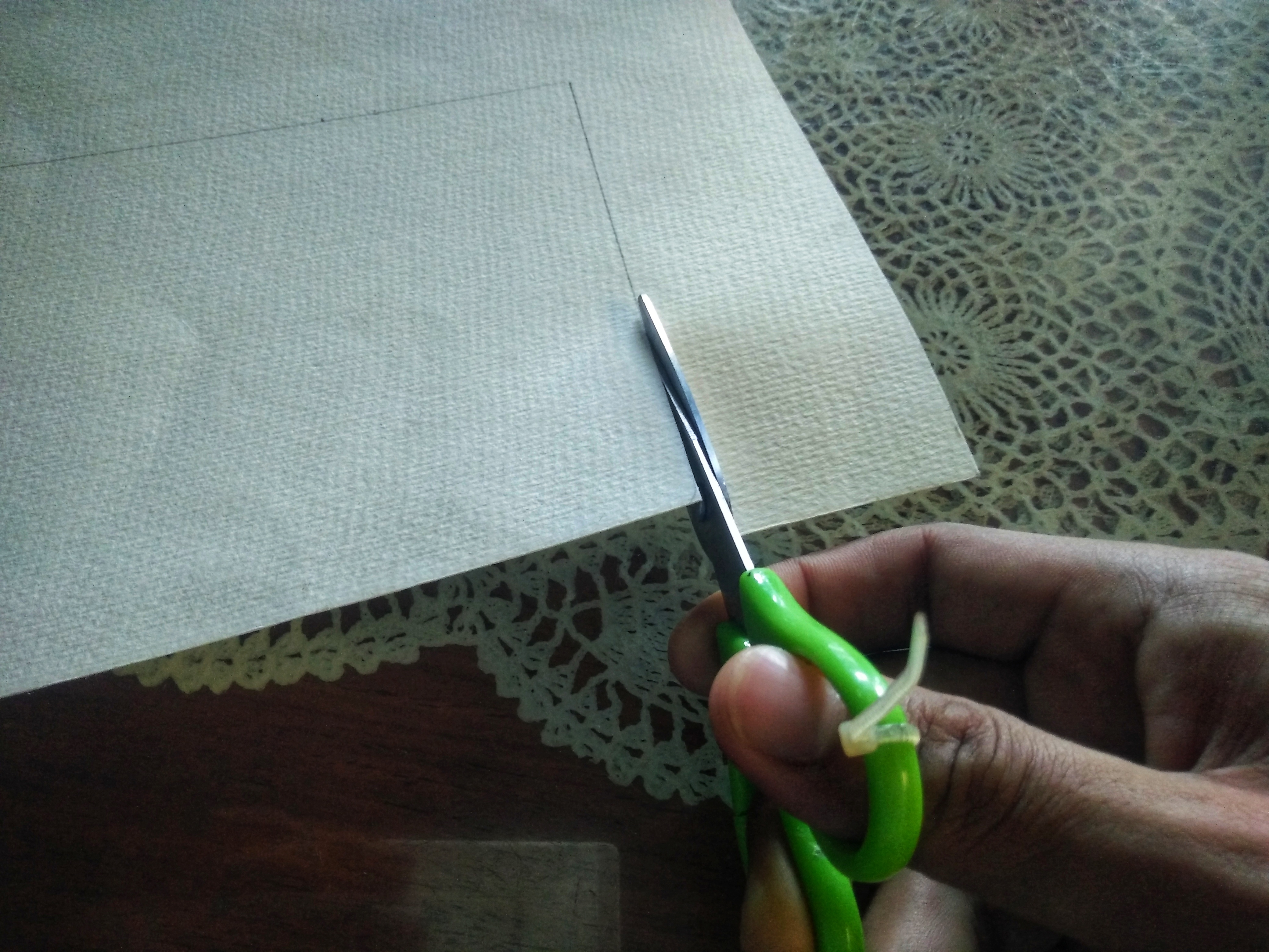 2.) Hold the pair of scissors and start cutting the traced piece out of the whole water color paper.