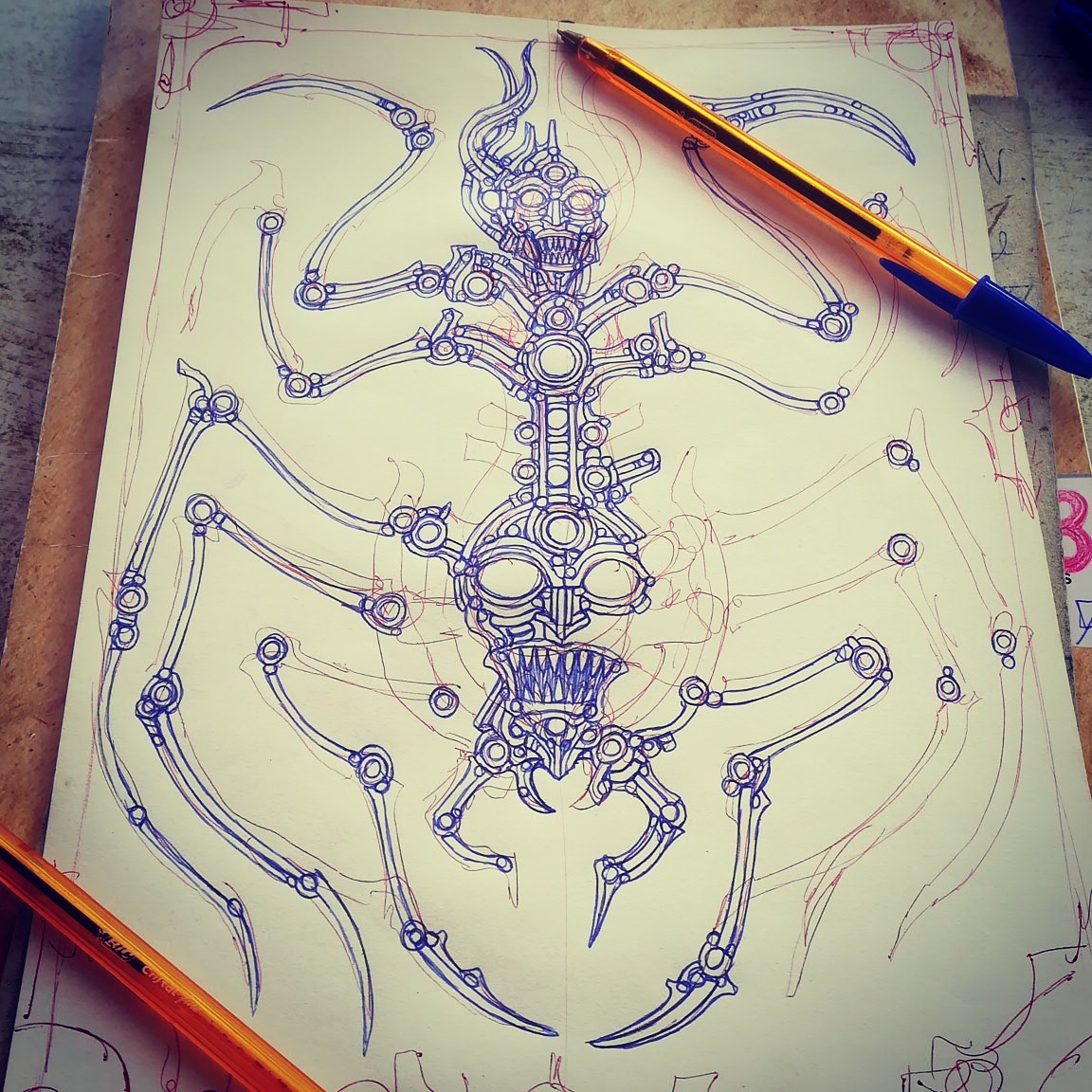 Cybercreature, work in prog, ink on papersylvain-dousset (45)in #art • 8 years ago When everybody nowadays work on digital stuff, I still like to use pencil and ink on paper... Traditional way, baby 😁 #drawing #sculpture #dessin #tattoo