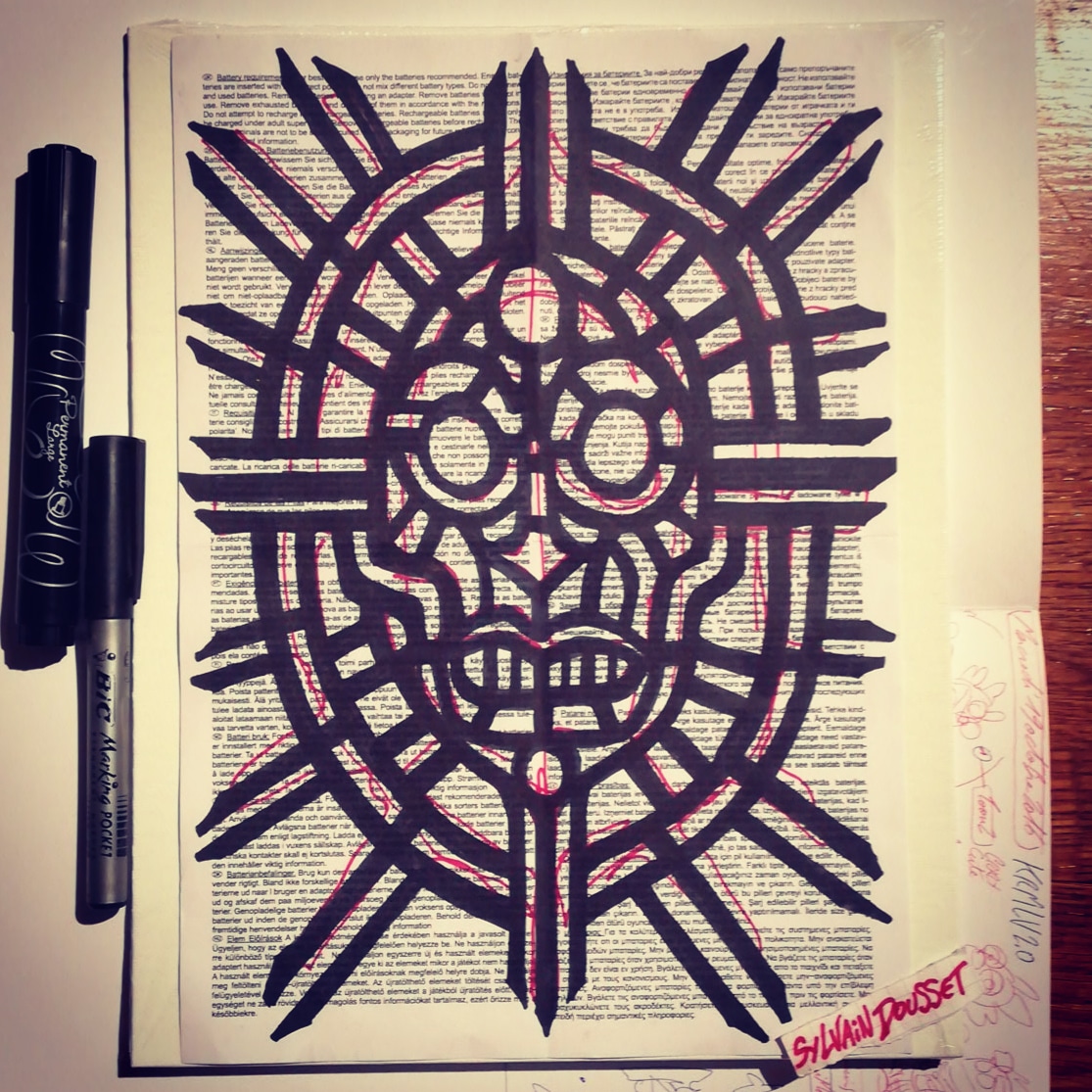 Face/mask, Esoteric Primitive Futurism, inking done.sylvain-dousset (45)in #art • 8 years ago Well, everything is in the title, really. That's the finished artwork version of the one I posted a few days ago. The plan is to turn this artwork into a painting and some king of mural sculpture. We will see how it goes. 👍😊 #drawing #sculpture #dessin #tattoo