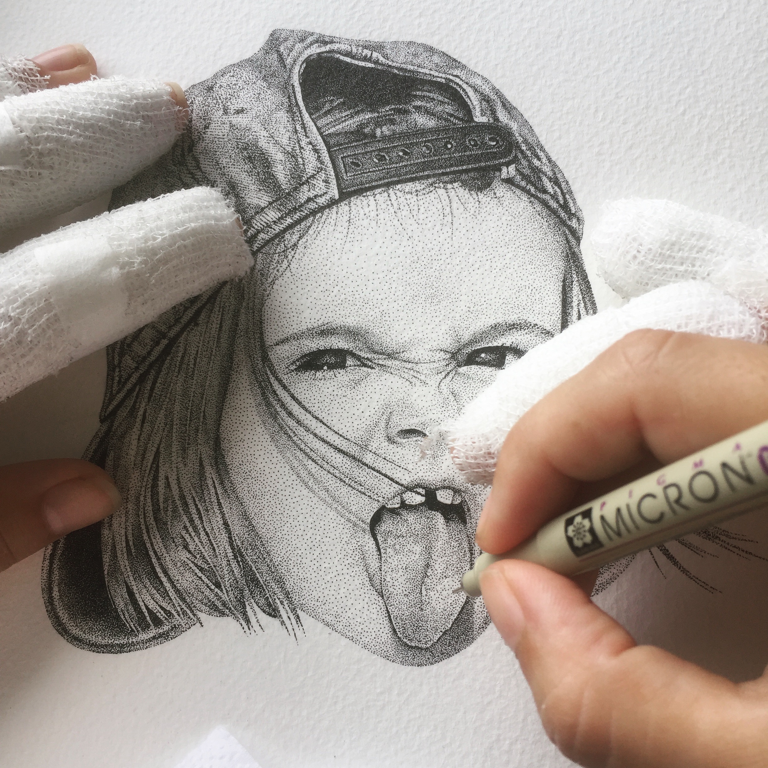 Just a wee update on the portrait I'm working on, so close to be done but, about a week ago, I got into a motorbike accident. 🙈 Luckily, nothing bad happened and only my hands got hurt.. which definitely didn't make the slow process of pointillism go any faster 😒 I also can't seem to be quite satisfied with a few details and will keep working at it until the sweet moment I'm going to take a step back to look at it and be completely happy with the result...