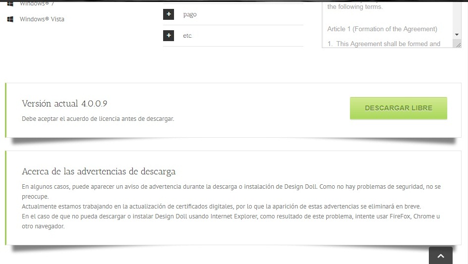 Para comenzar la descarga daremos click en esta parte donde dice "version actual 4.0.0.9....Descarga libre"